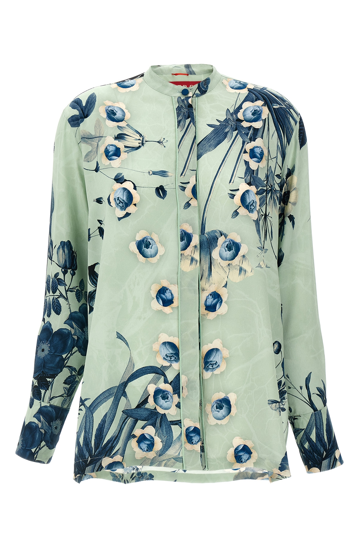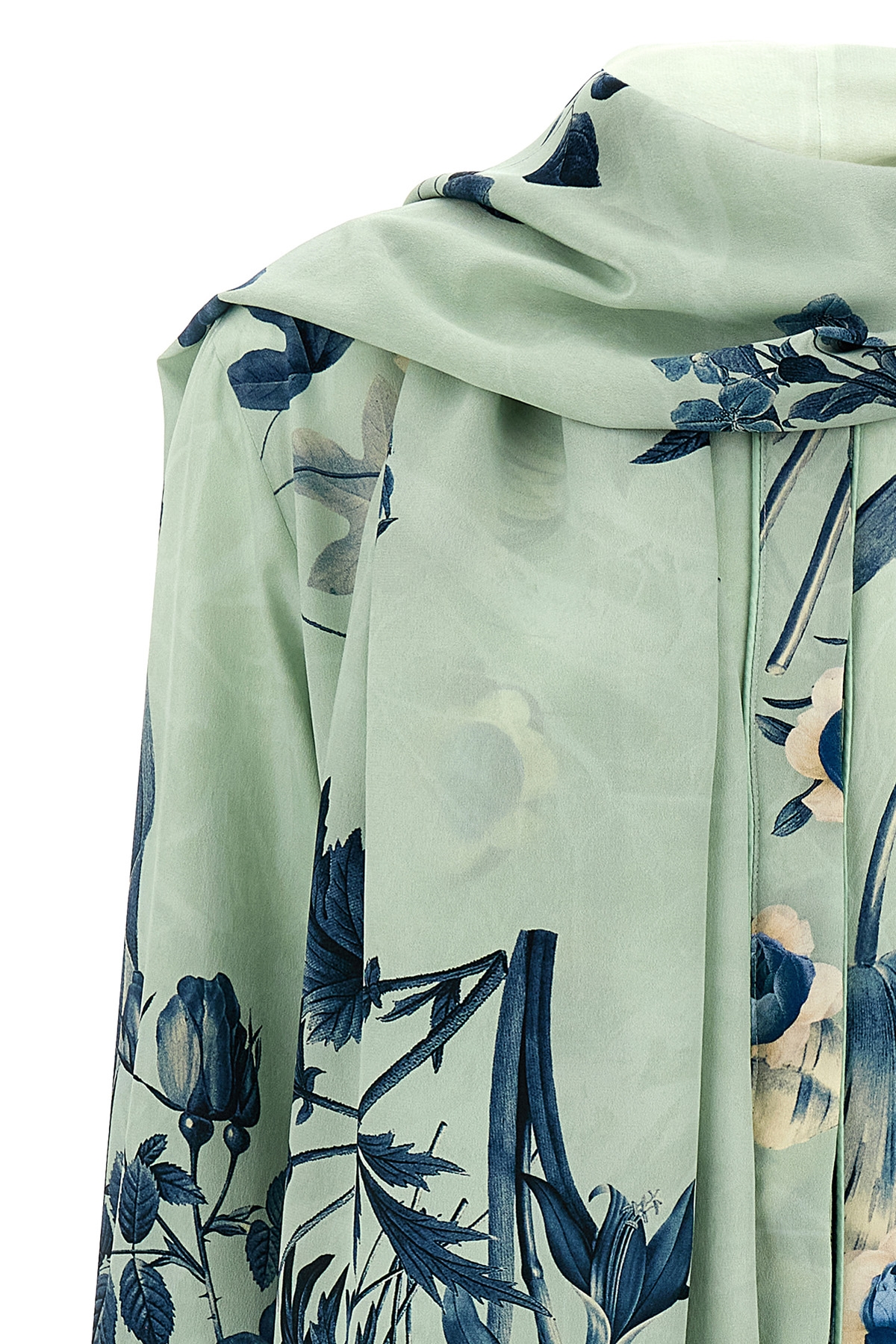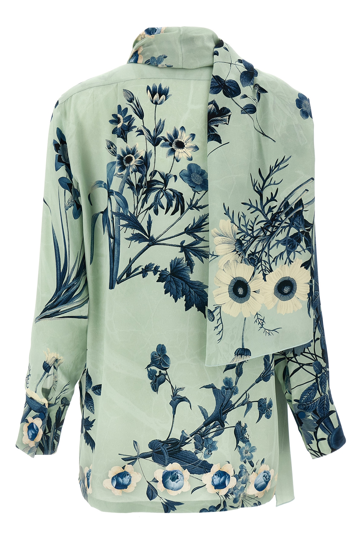 'Egle' printed silk shirt with sash tie at the removable neck, long cuffed sleeves, button closure.