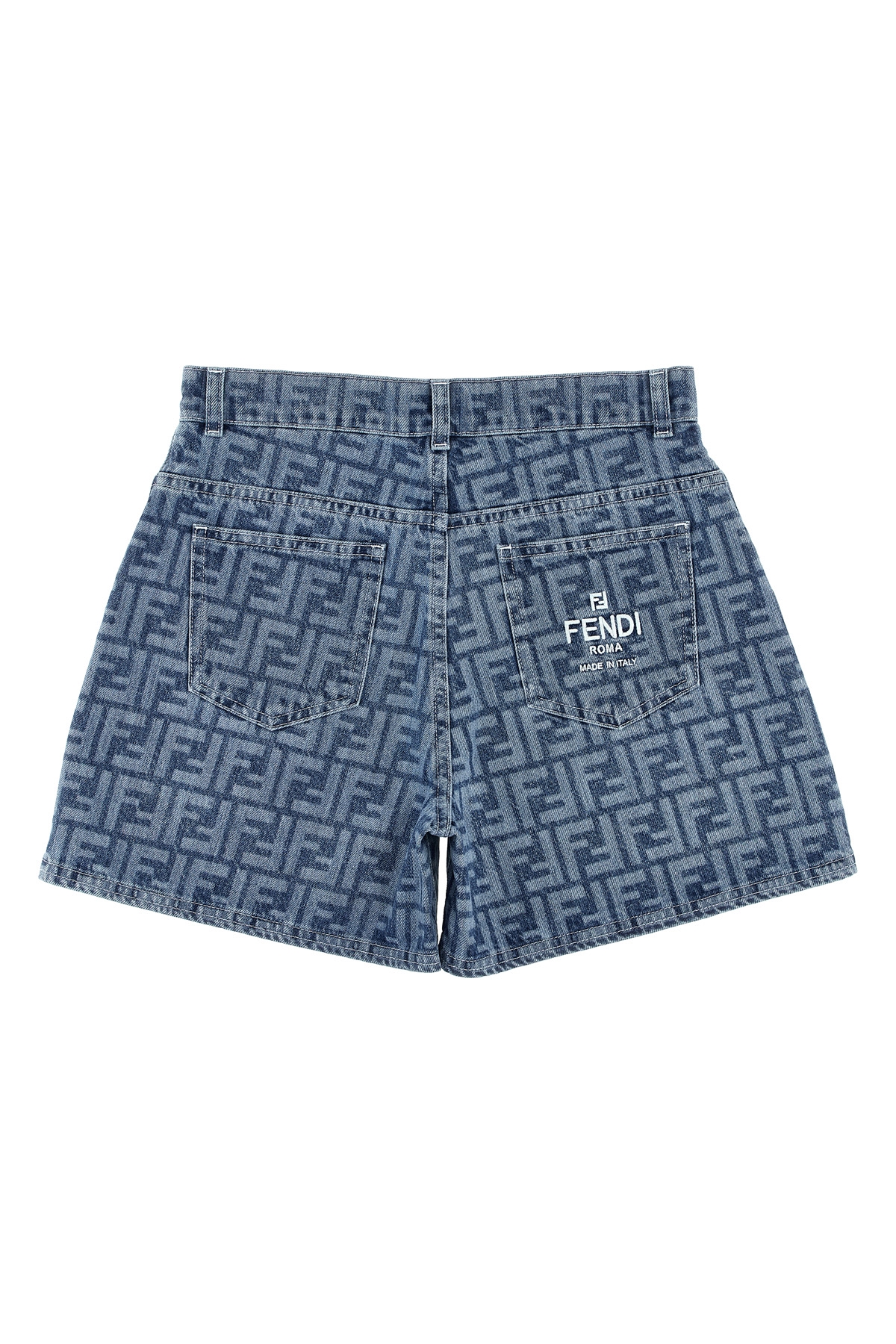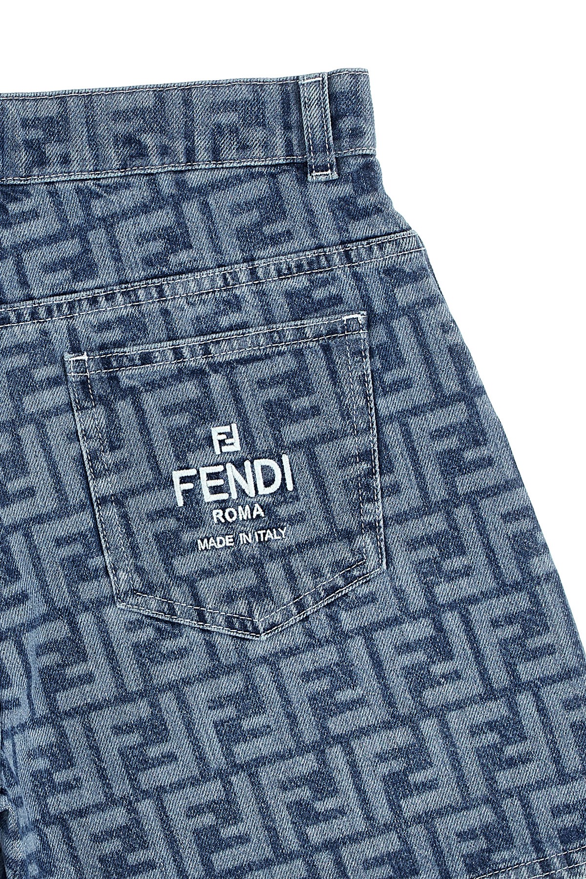 KIDS Cotton denim shorts with all-over 'FF' logo pattern, zip and button closure, pockets.