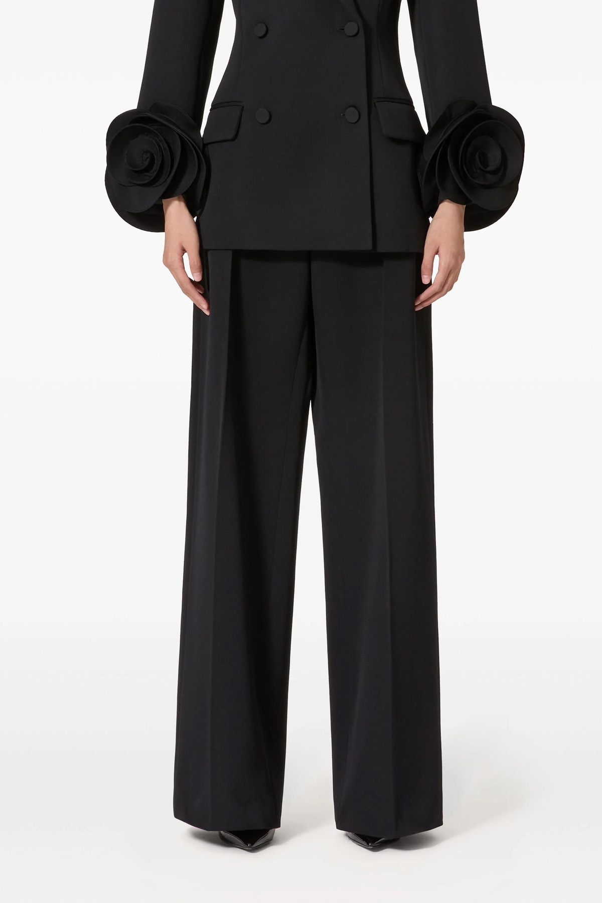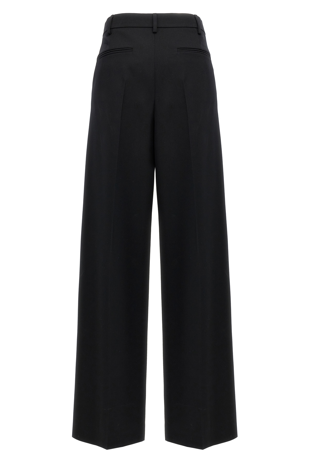 'Solid Grisaille' wool trousers, hook and button zip closure, pockets, wide and straight leg with stretched pleat.