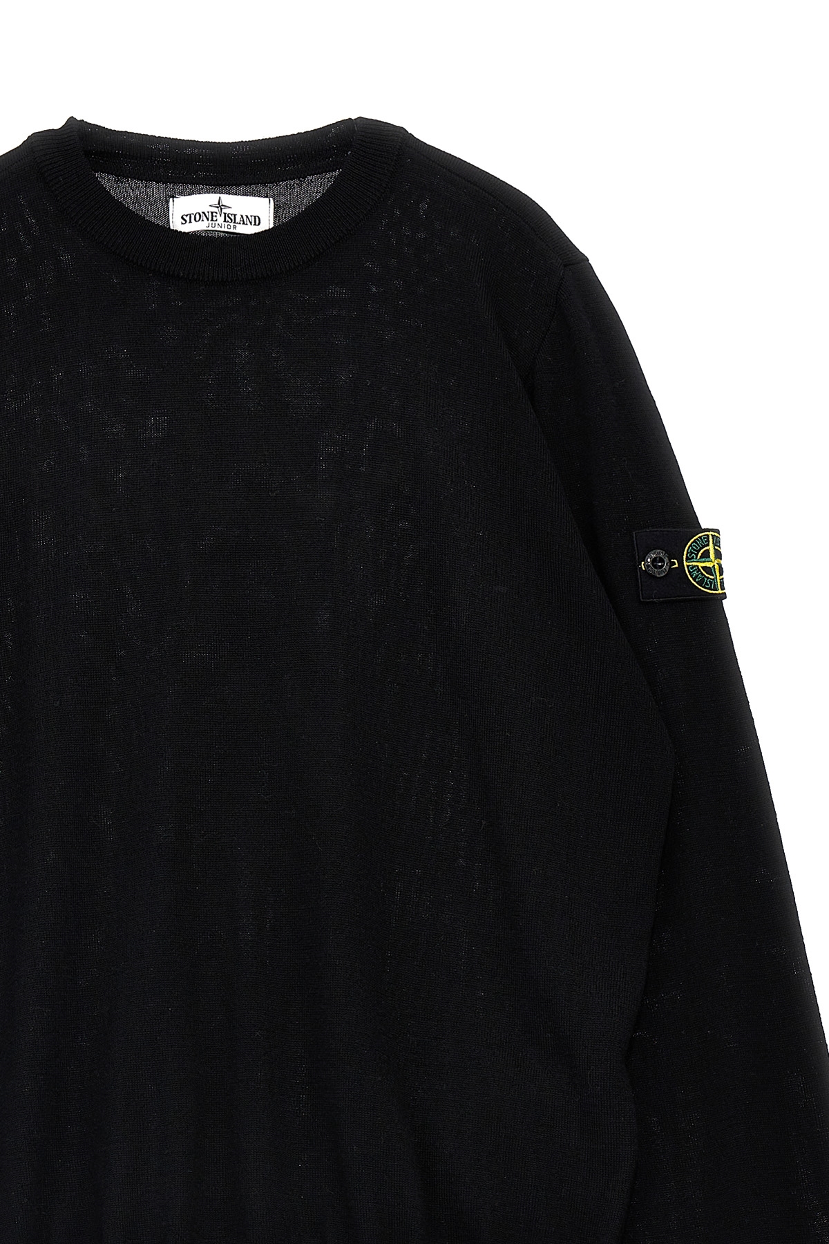 KIDS Wool sweater with logo patch, crew neck, long cuffed sleeves.