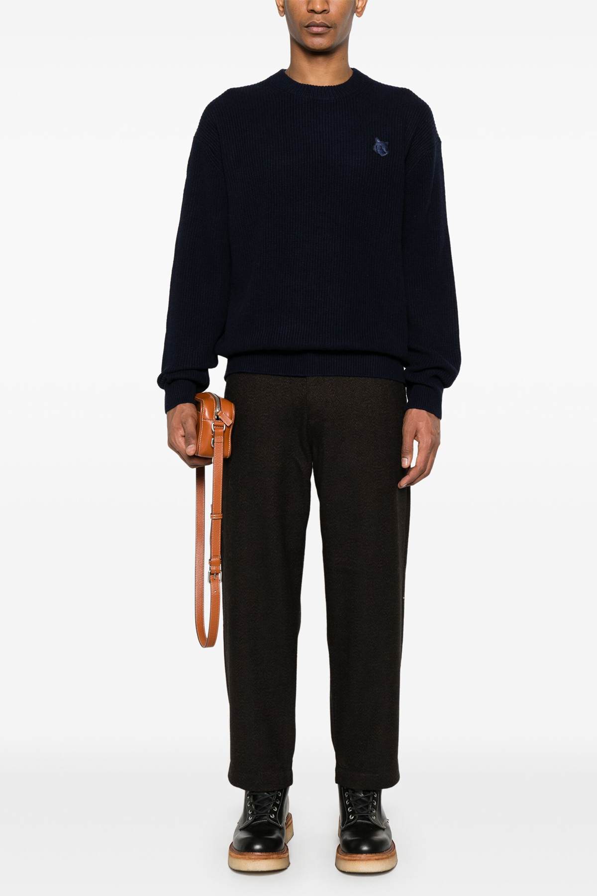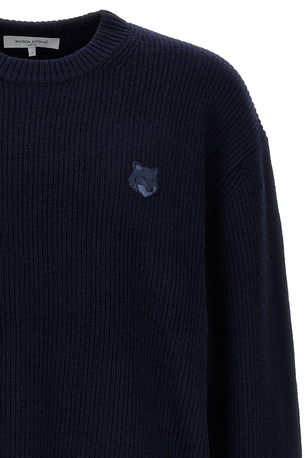 'Bold Fox Head' wool blend sweater with front patch logo, crew neck, long cuffed sleeves.