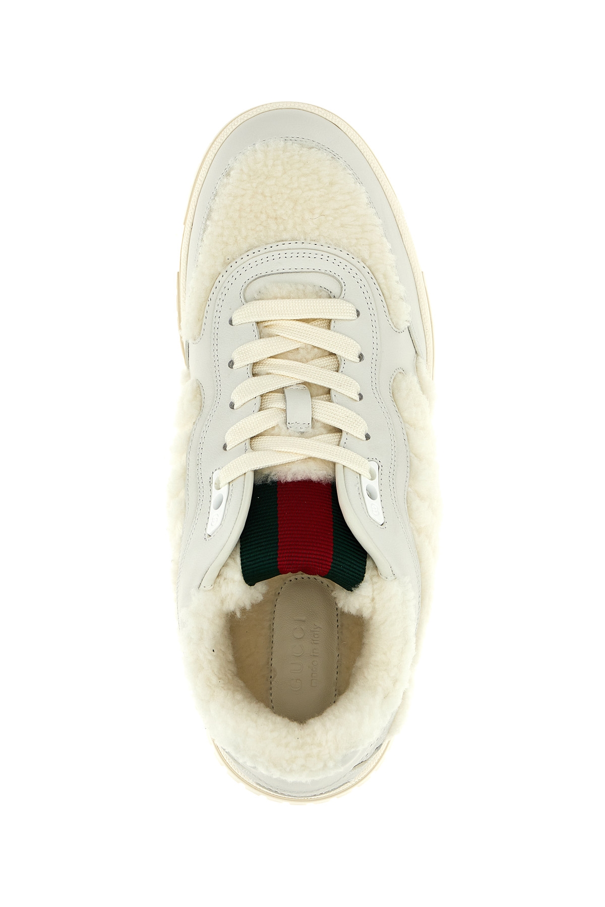 'Gucci Re-Web' sneakers in teddy and leather effect fabric, laces, rubber sole, web ribbon detail on the tongue.