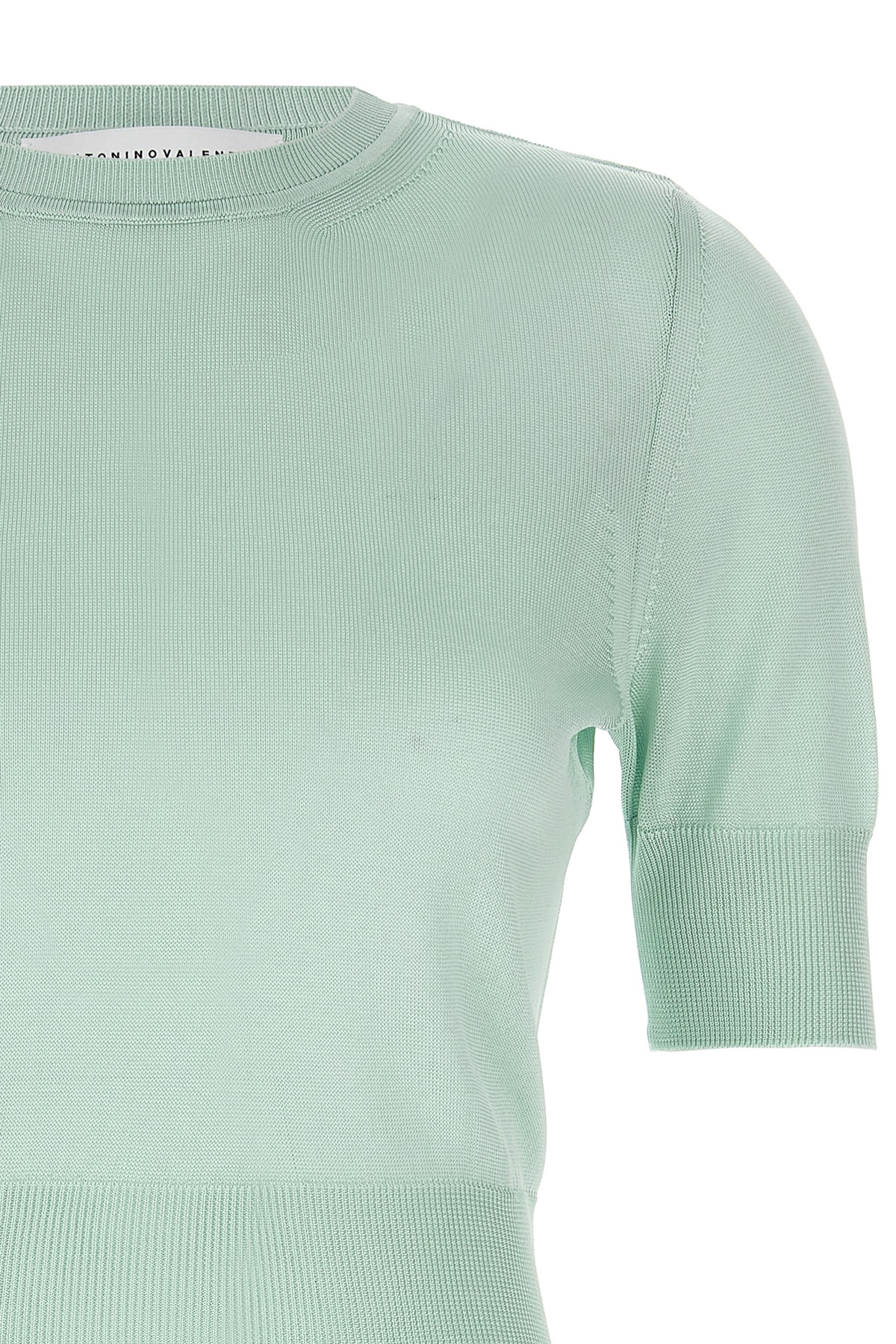 'Leonora Carrington' viscose crop sweater with crew neck, short sleeves.
