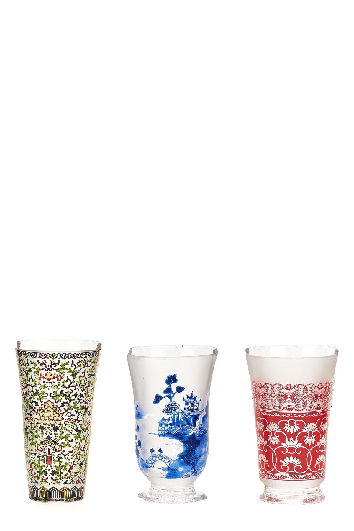 'Hybrid Clarice' glass cocktail glasses. Set of 3 glasses.