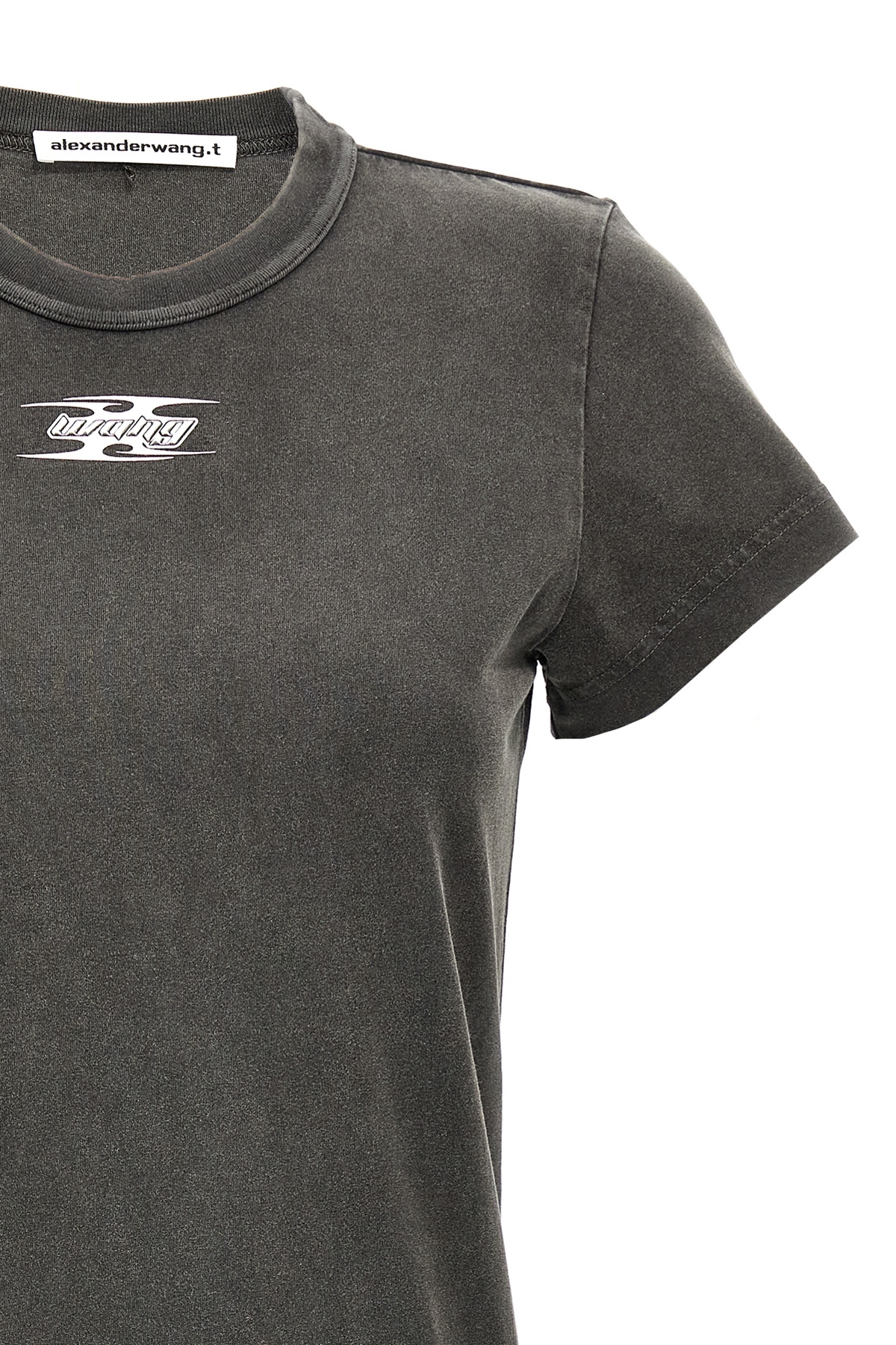 'Shrunken Tee' washed effect cotton mini dress with front embossed logo, crew neck, short sleeves.