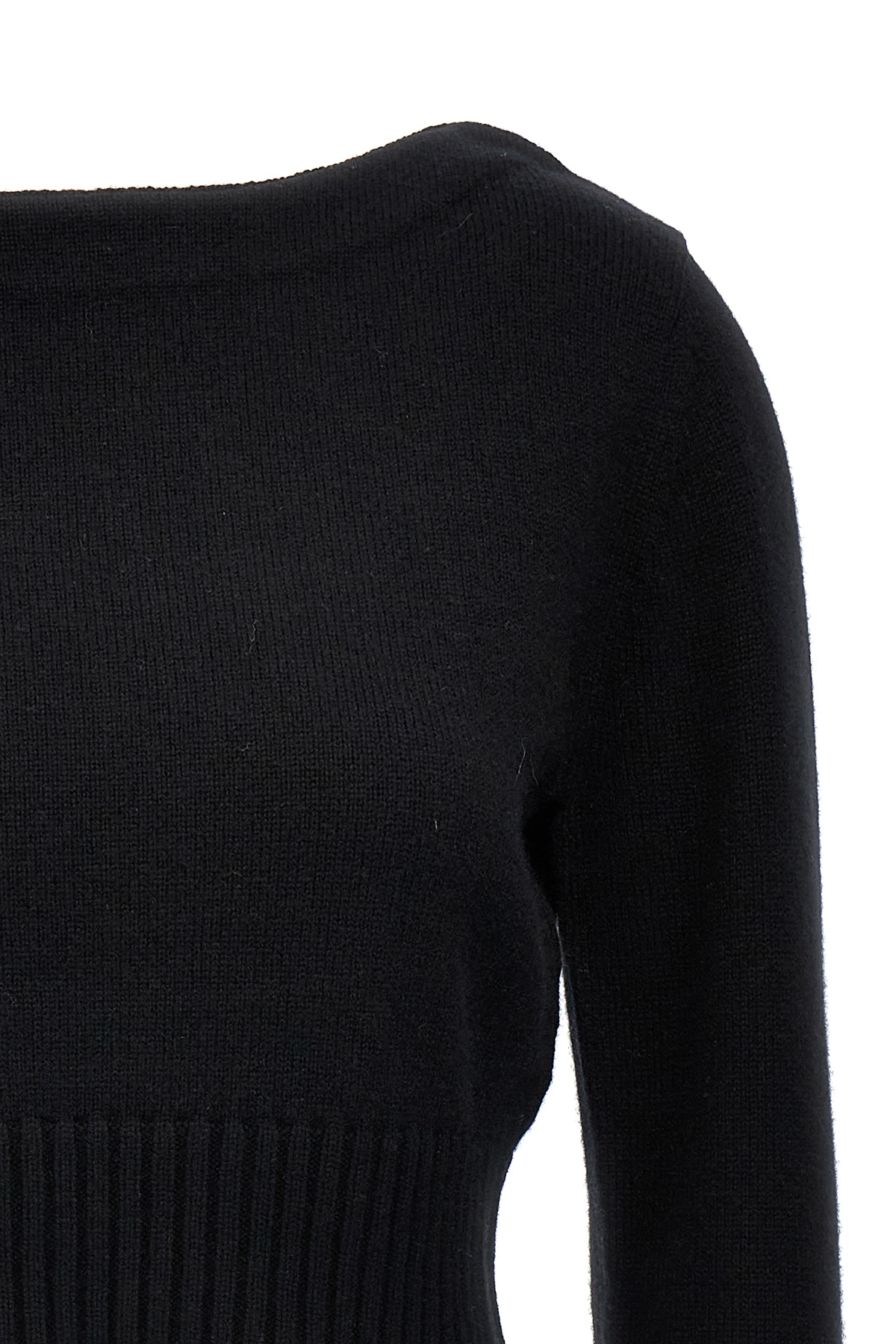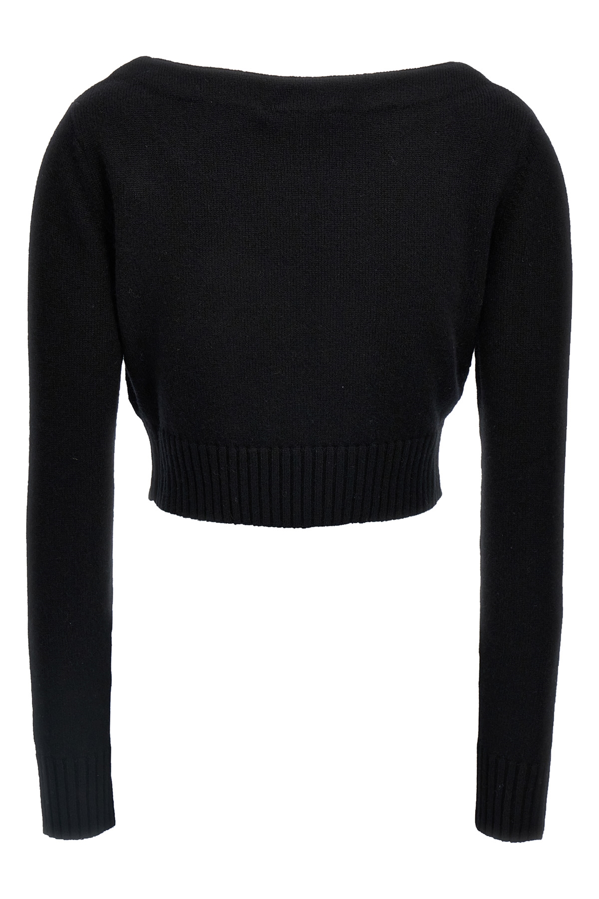 Angri' cropped sweater in wool and cashmere blend with boat neck, long cuffed sleeves.