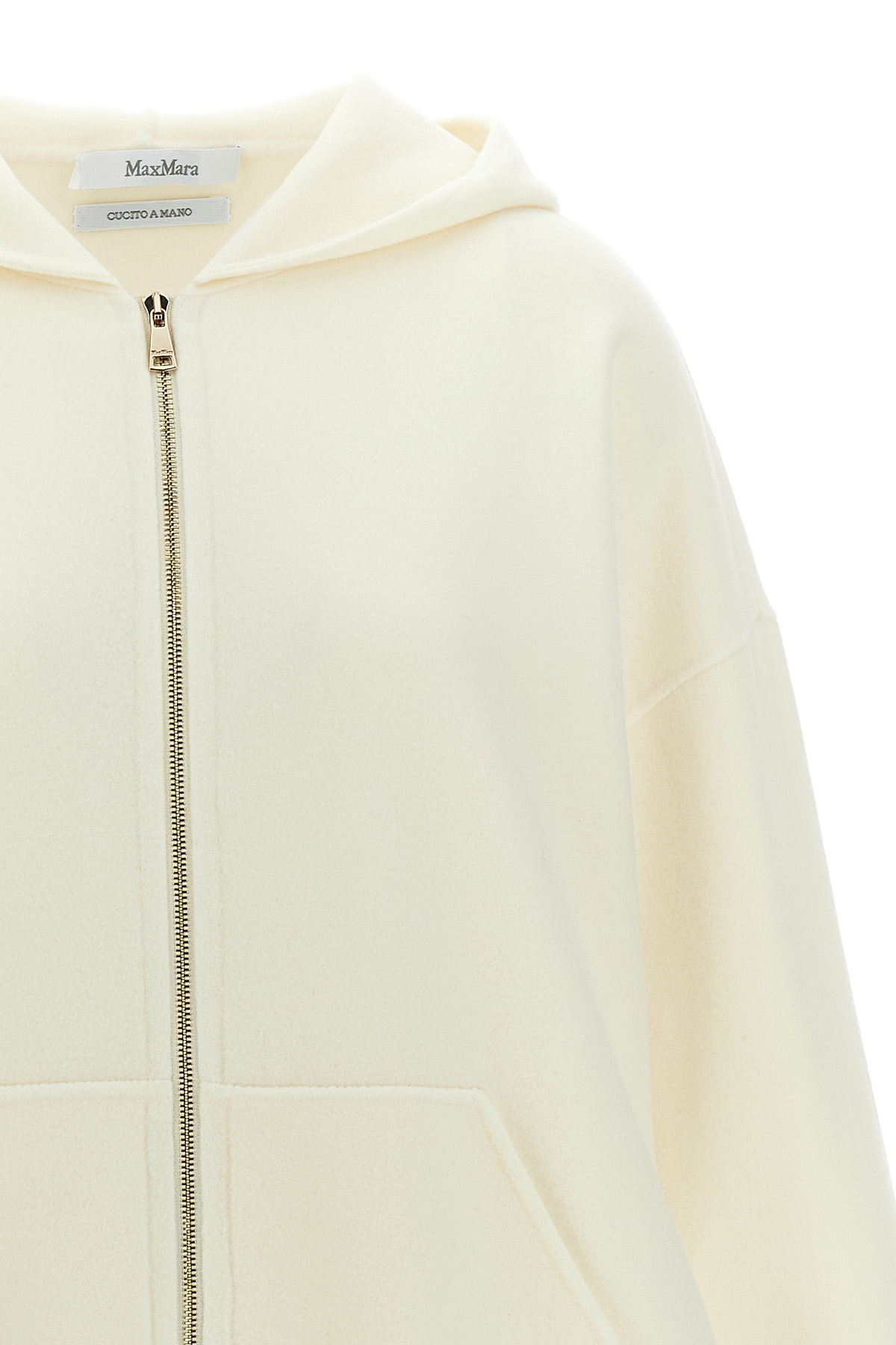 'Saio' wool and cashmere hoodie with tone-on-tone embroidery logo on the sleeve, zip closure, pockets, long cuffed sleeves.