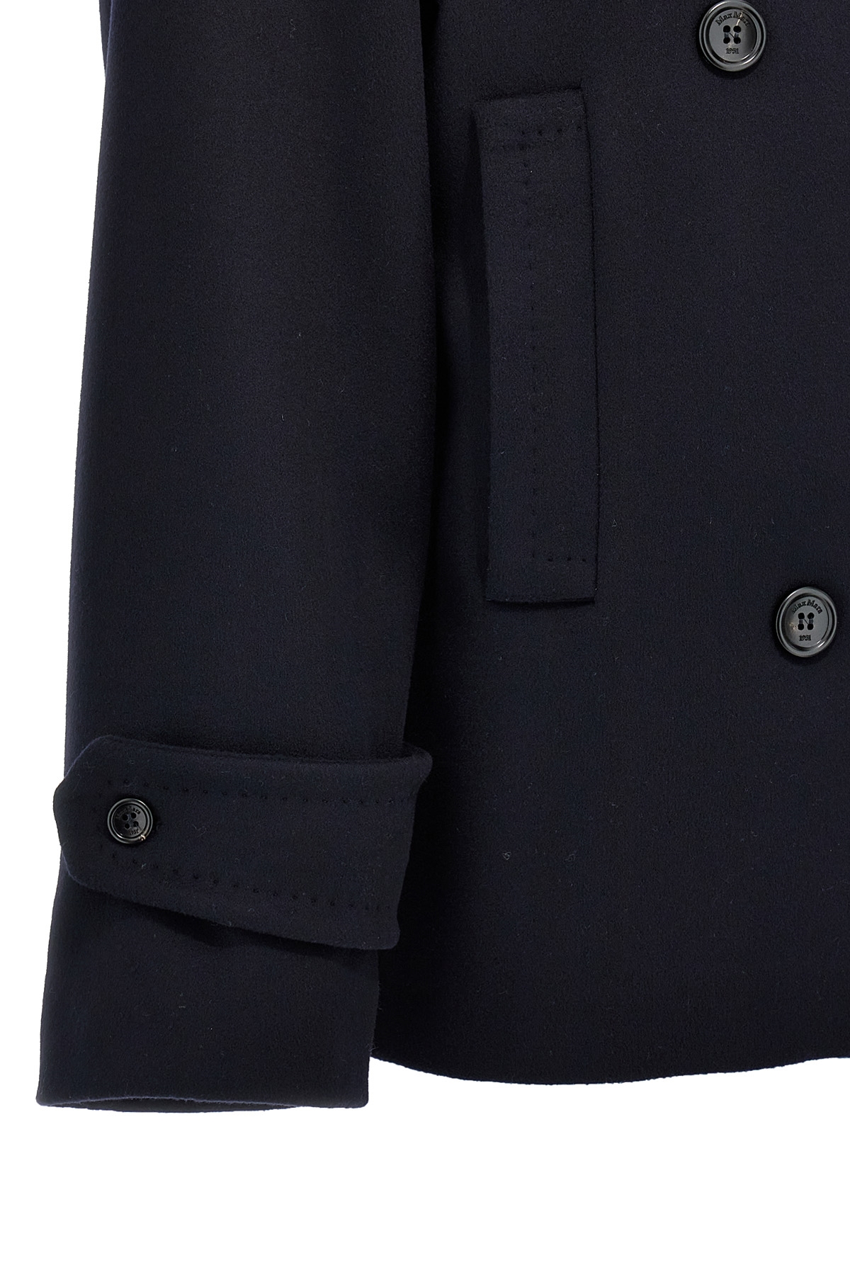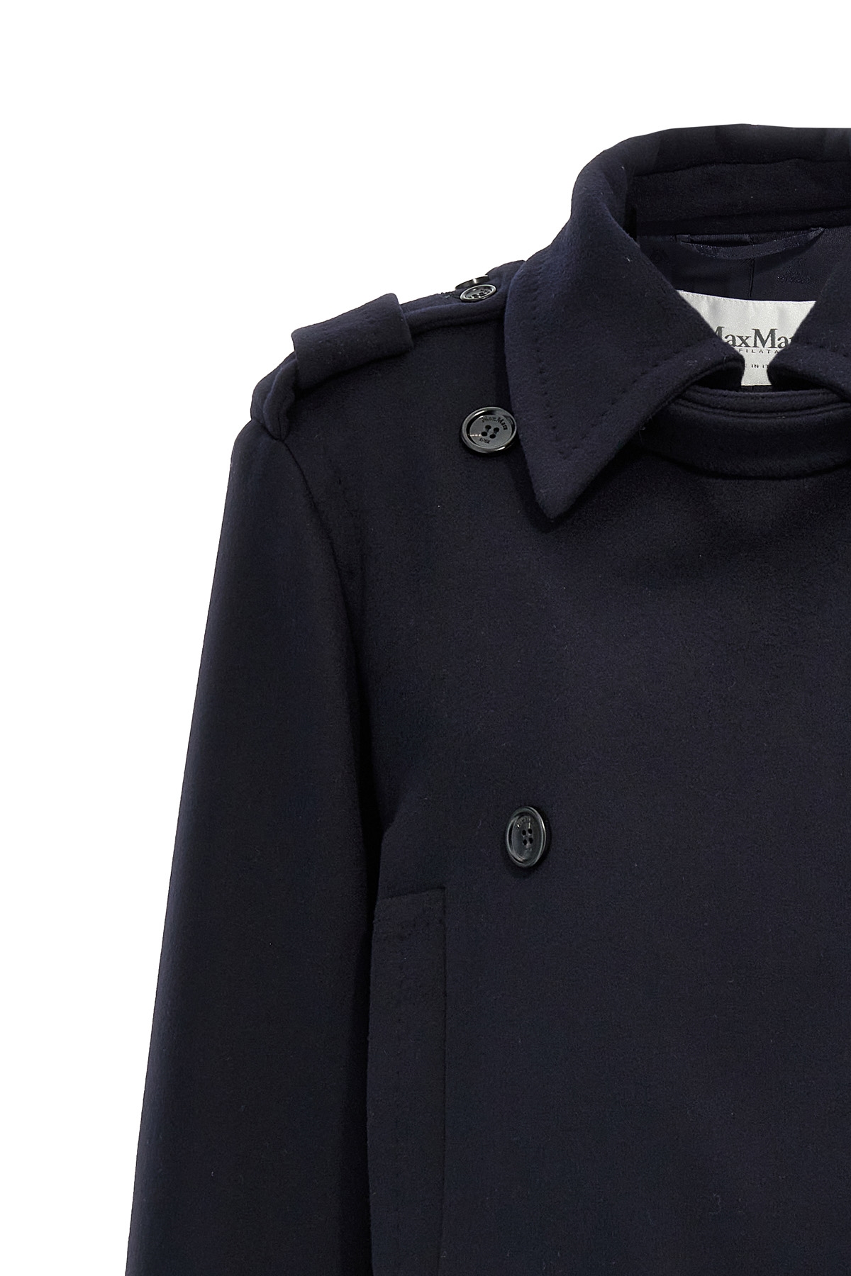 'Laveno' double-breasted wool and cashmere coat with button closure, padded shoulders with alamari detail, pockets, long sleeves with frogs, viscose lining, back vents.