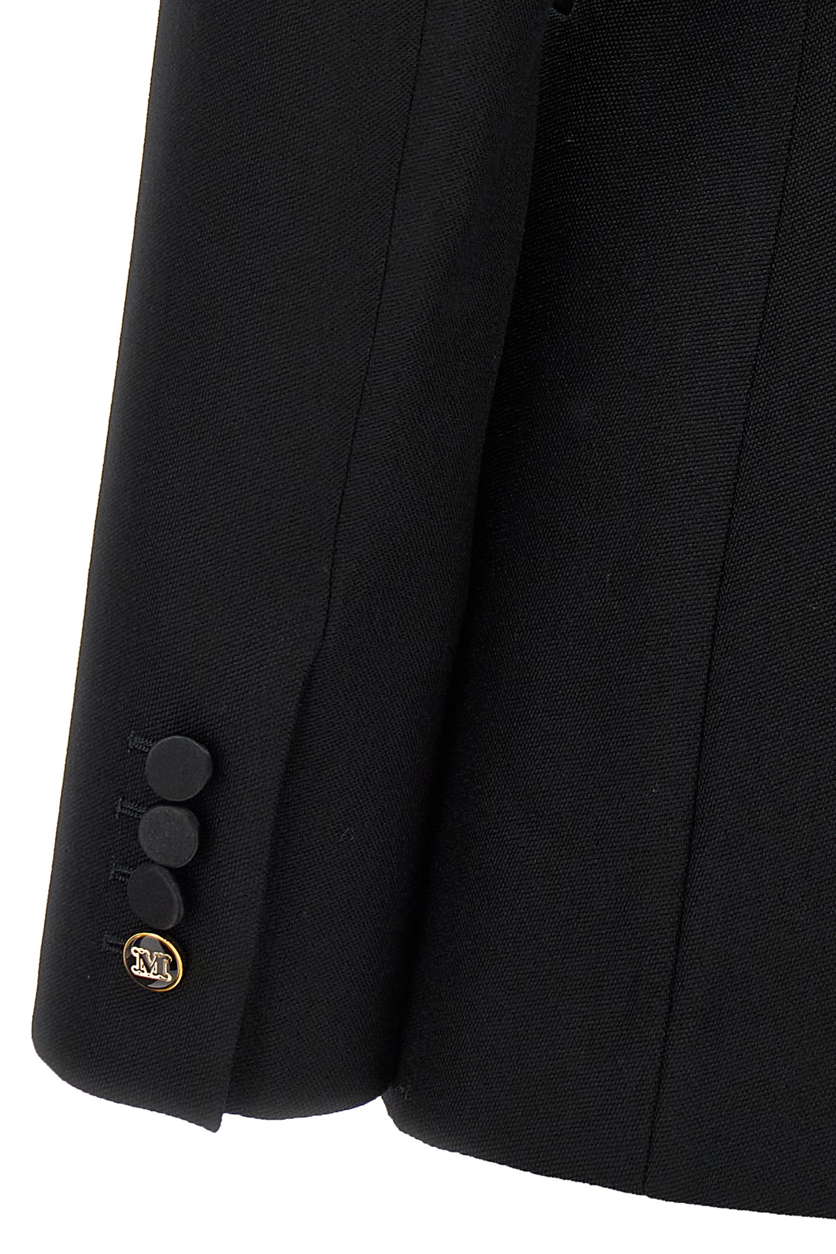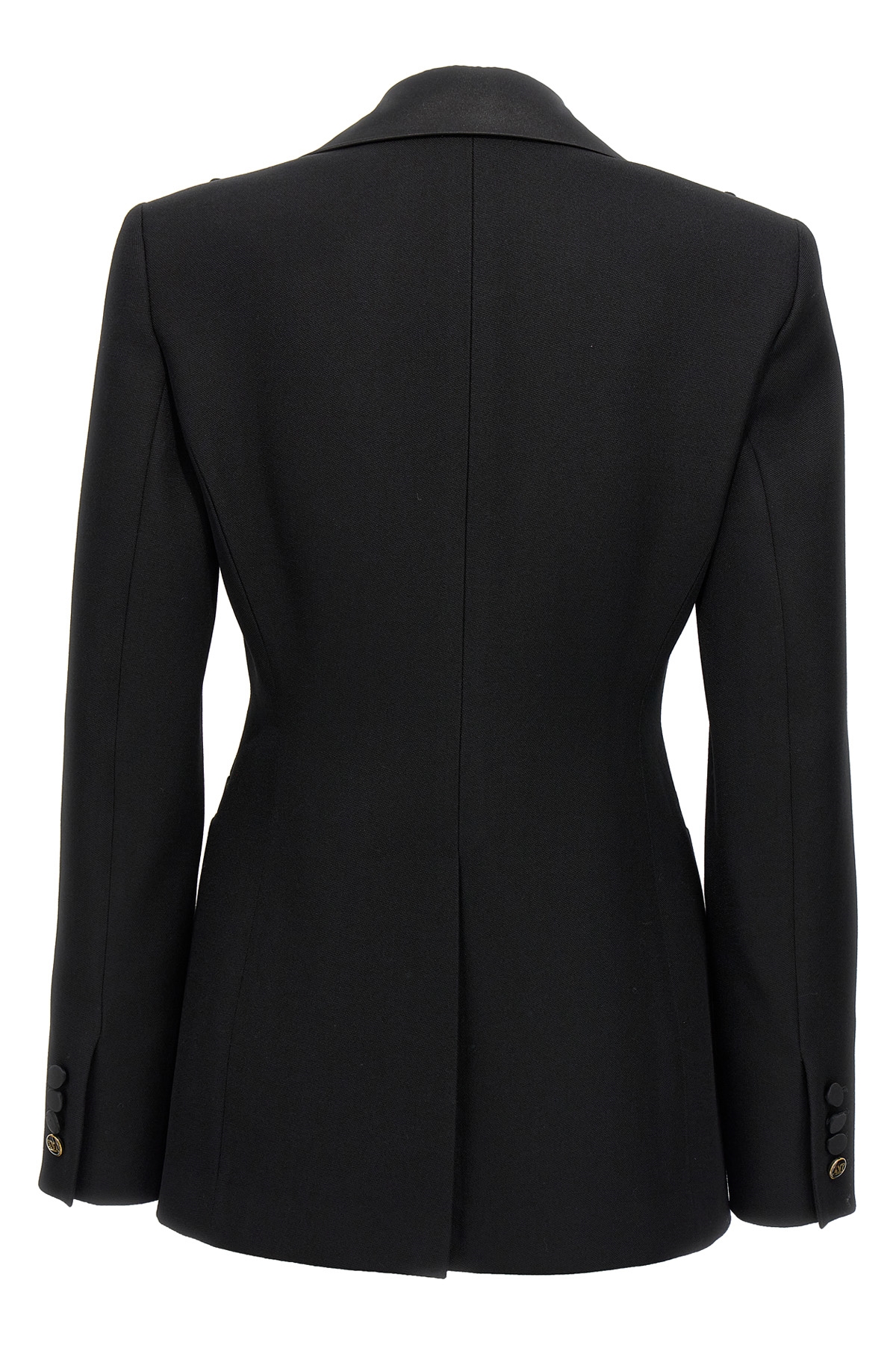 'Boemia' wool blazer with peak lapels, jeweled tassel closure, satin details, long sleeves, pockets, back split.