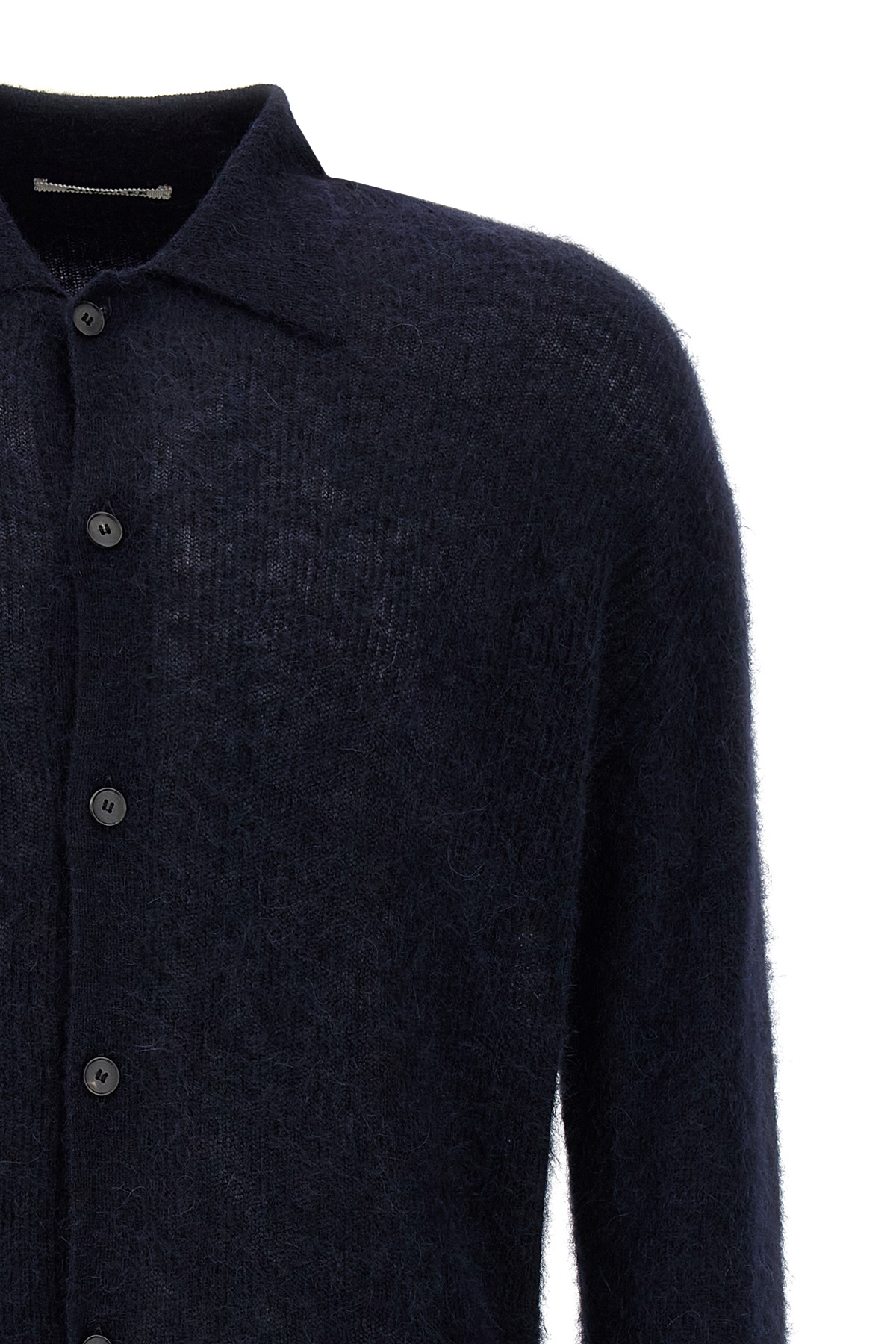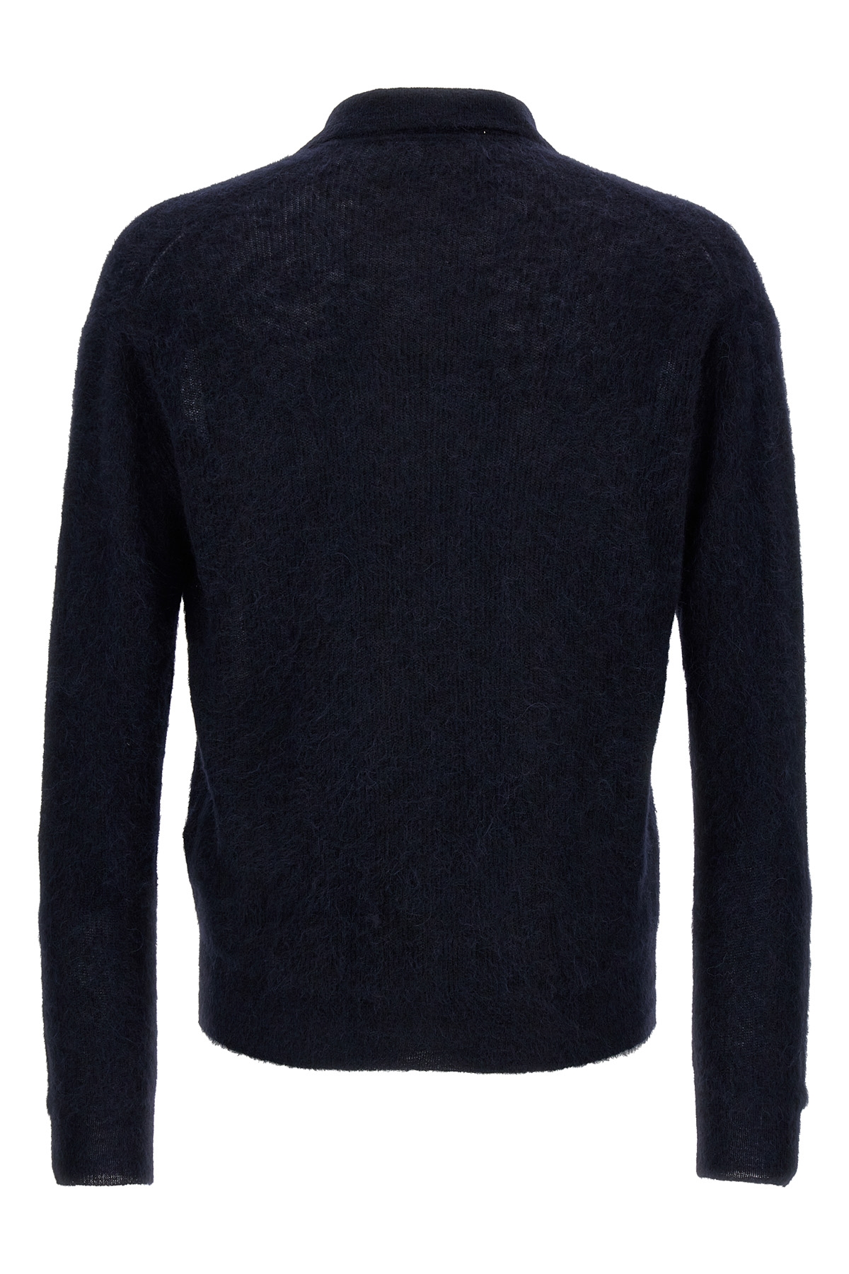 Baby alpaca blend sweater with collar and long cuffed sleeves.