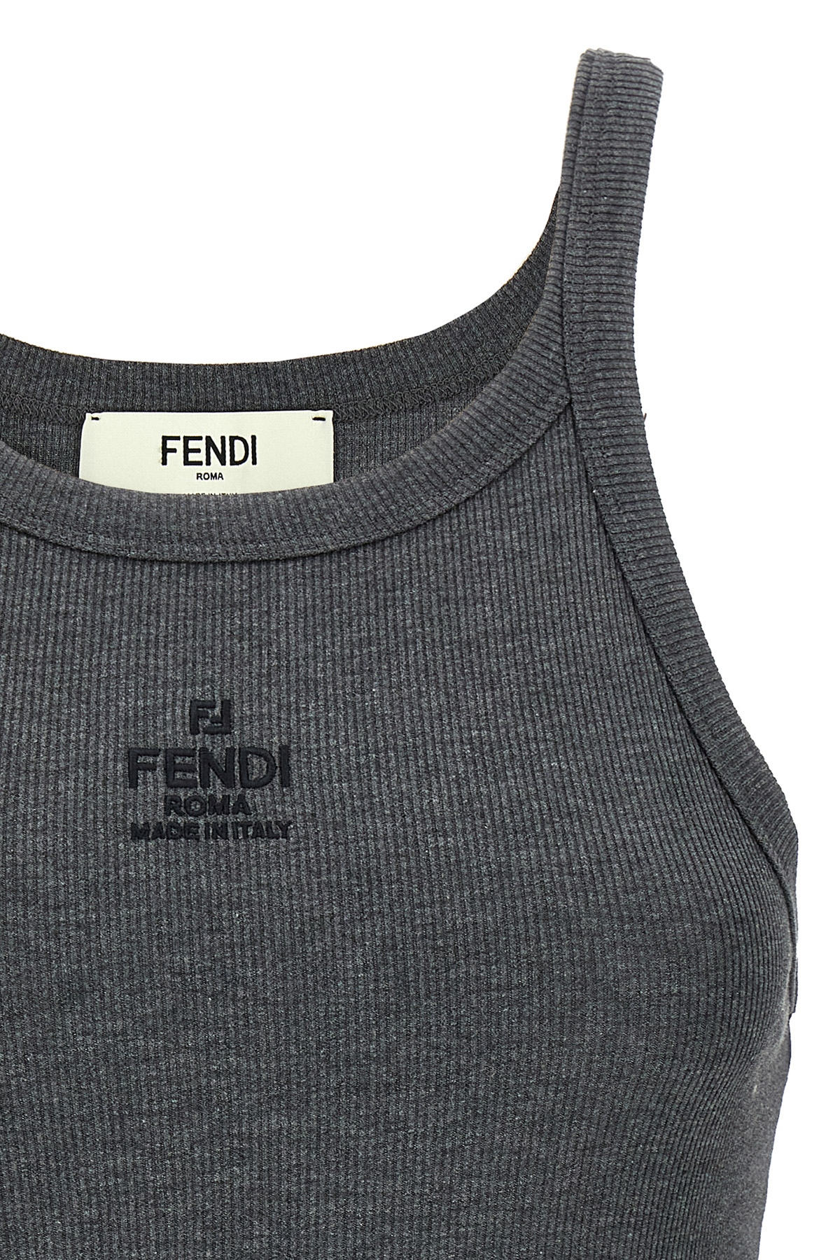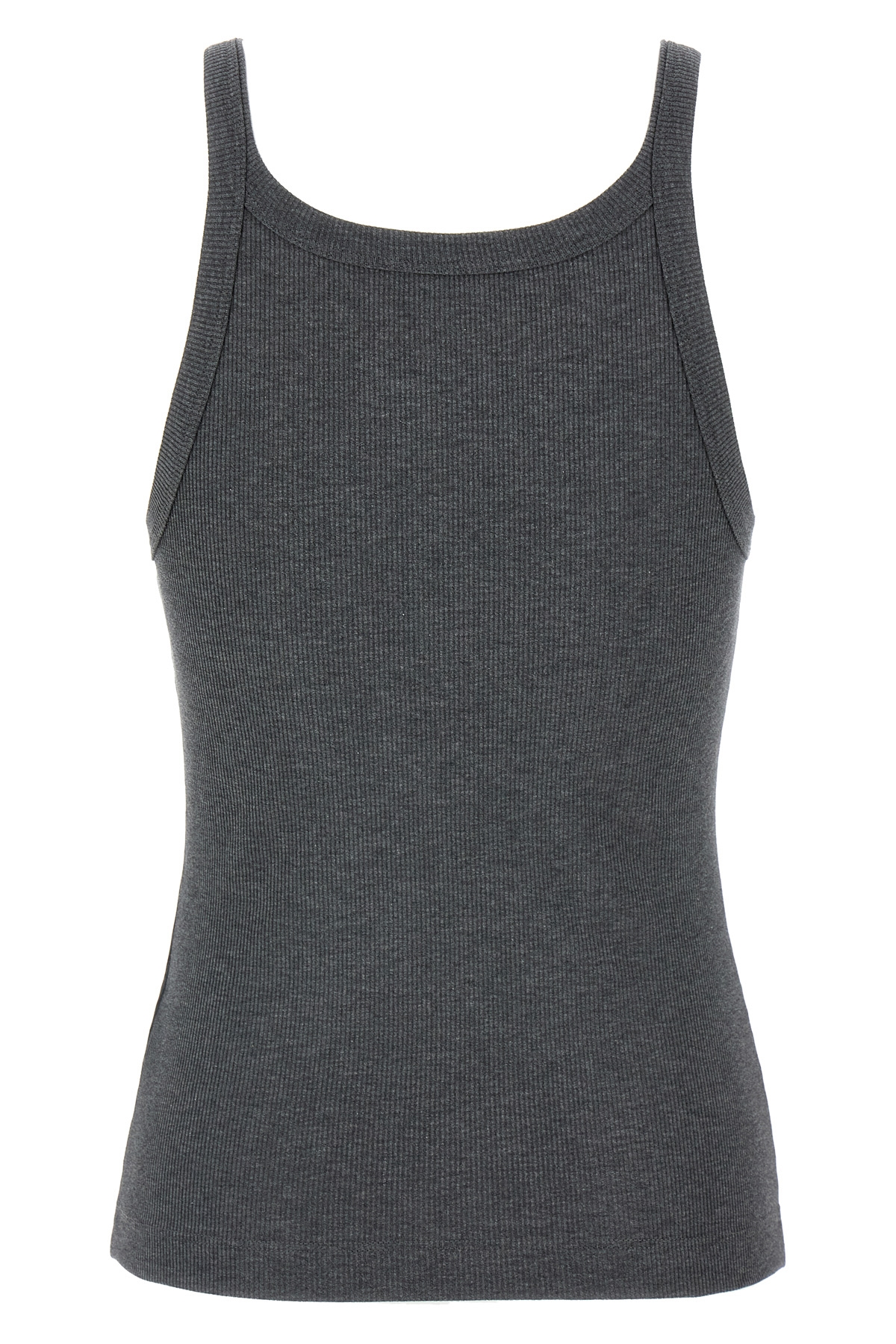 Ribbed cotton top with front embroidered logo, sleeveless.