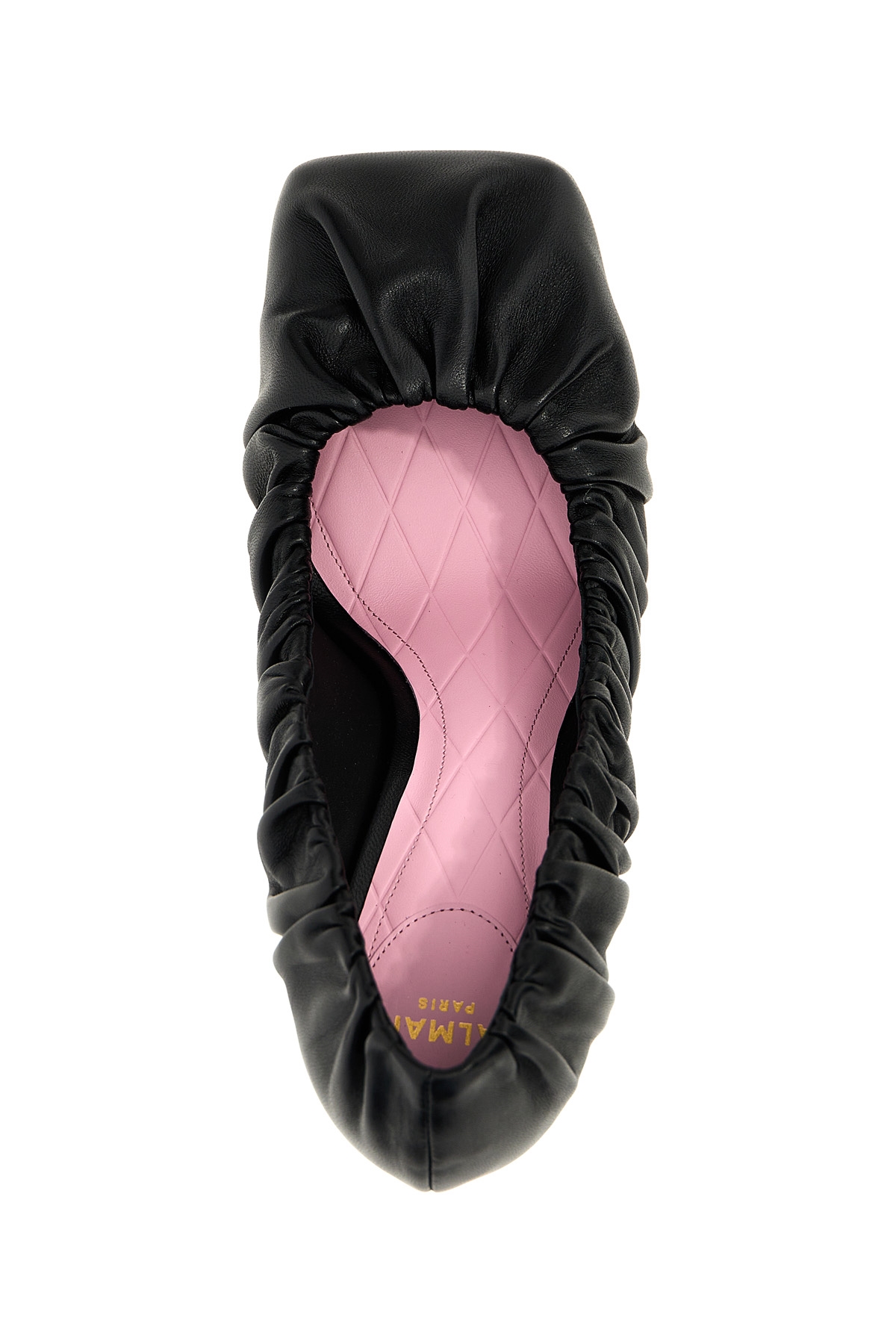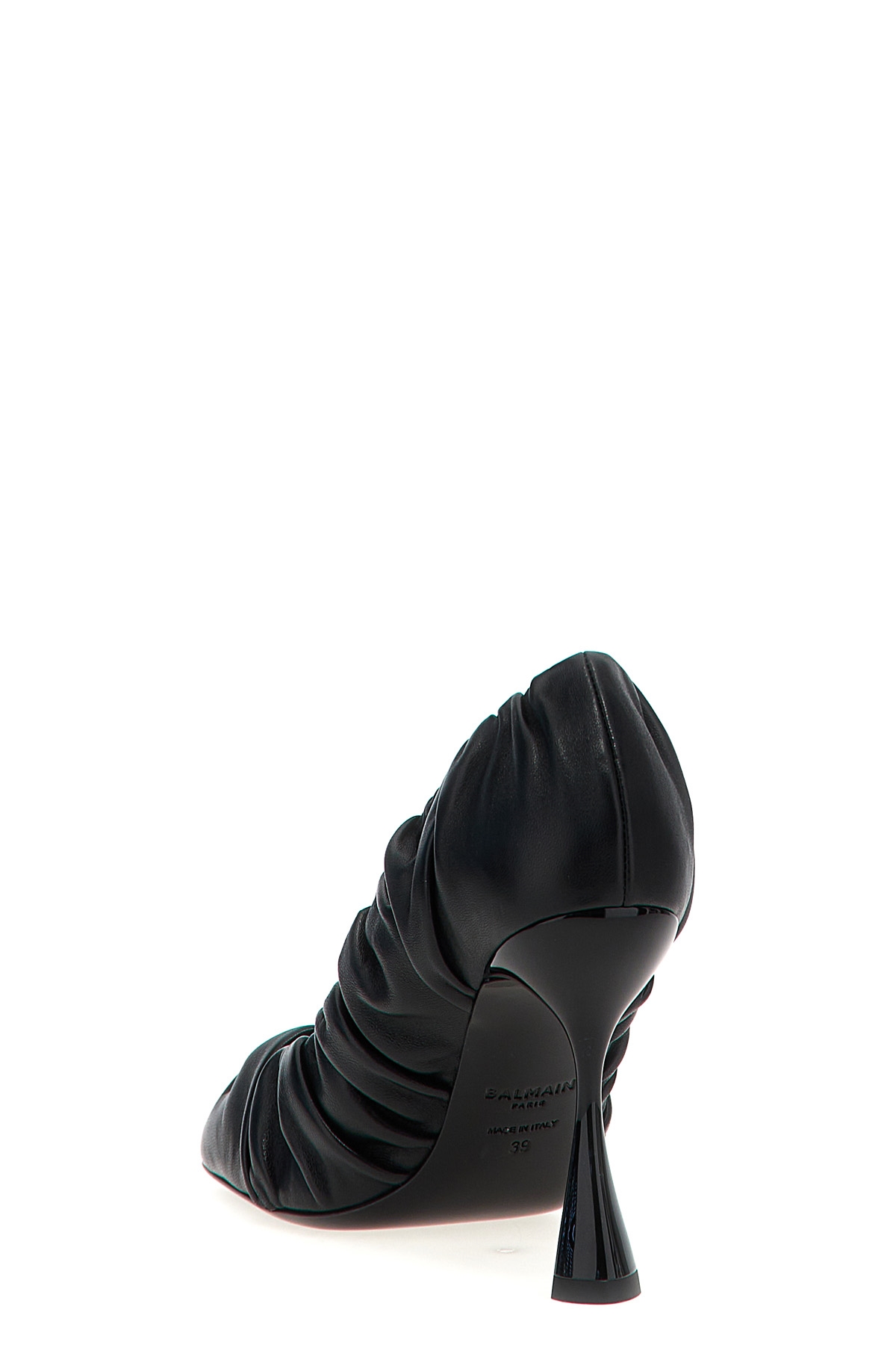 'Eden' crinkled leather pumps with lacquered heel, square toe, leather sole.