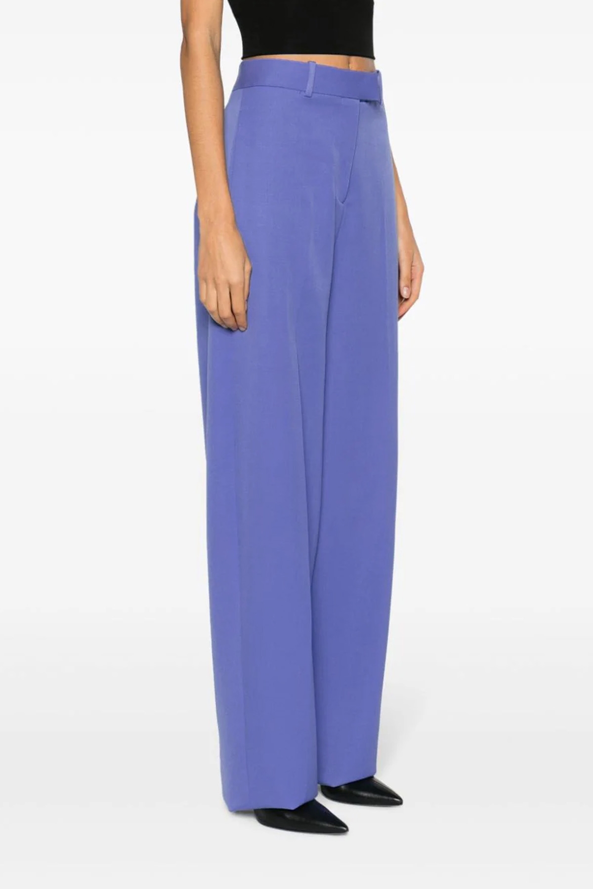 'Jagger' wool trousers, wide leg model with ironed crease, zip, hook and button closure, pockets, rear logo embroidery.eeves, rear vent and wide-leg trousers with pressed crease, zip, hook and button closure, pockets, rear logo embroidery.