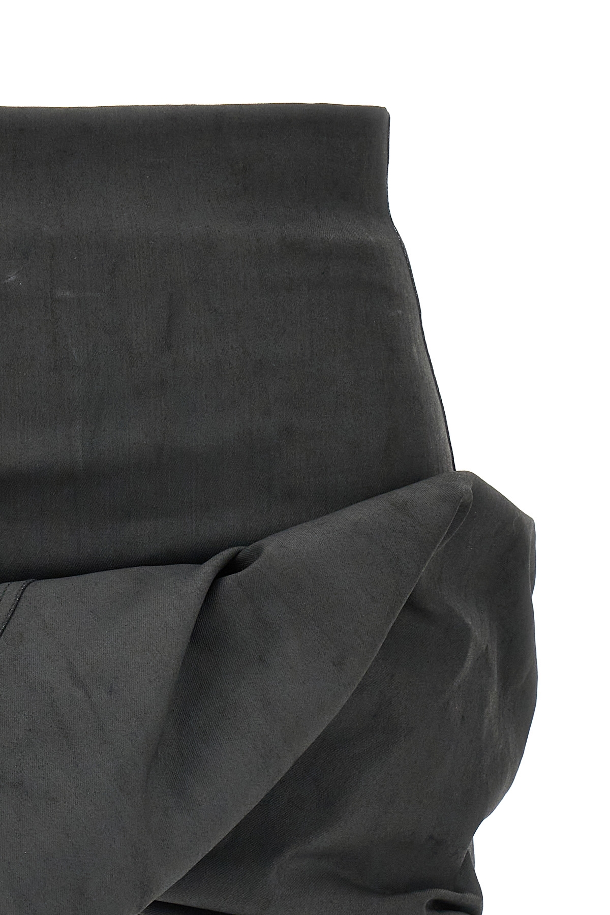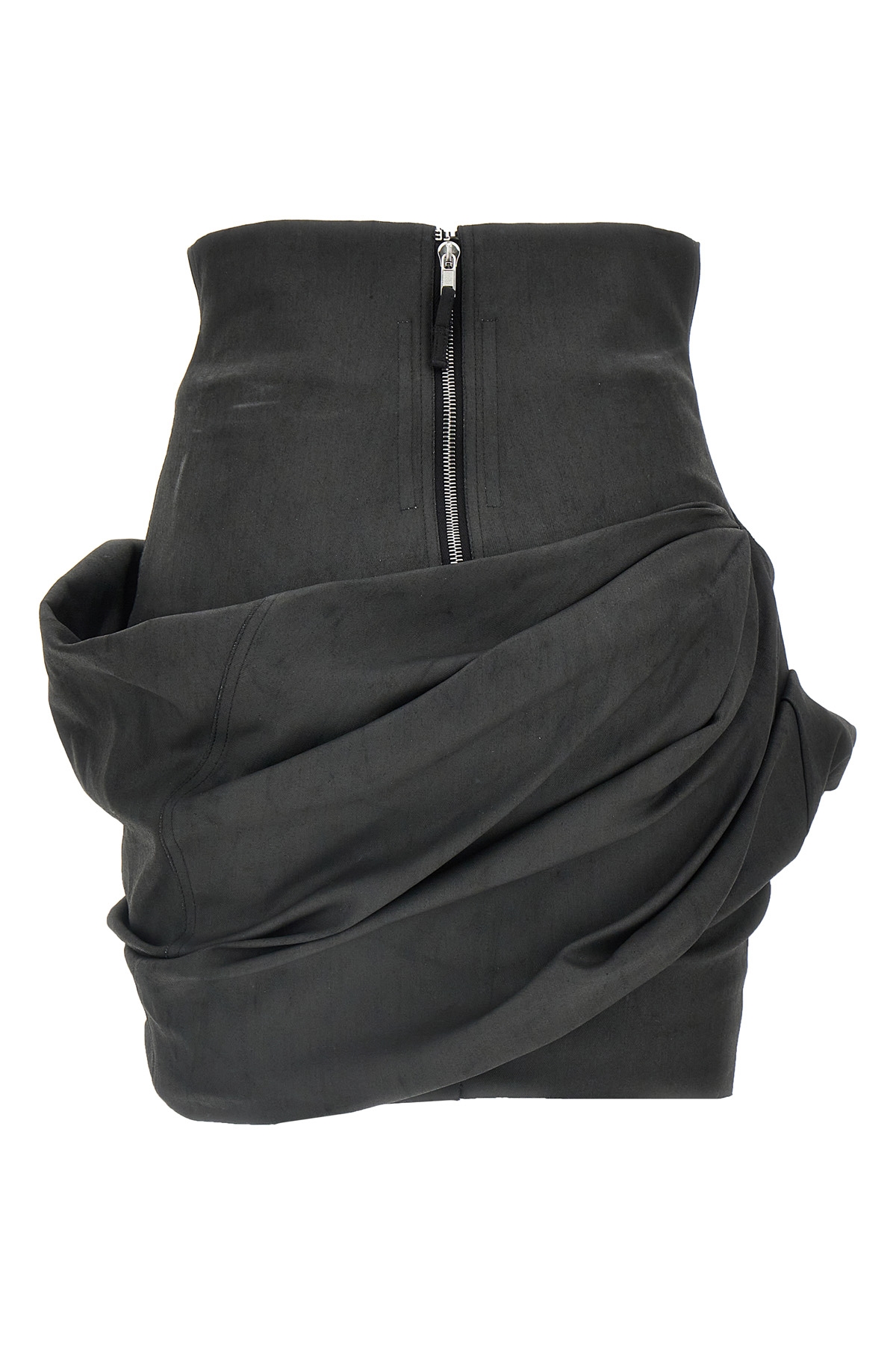 'Draped Mini' skirt in coated stretch cotton with back zip closure, asymmetrical hem.