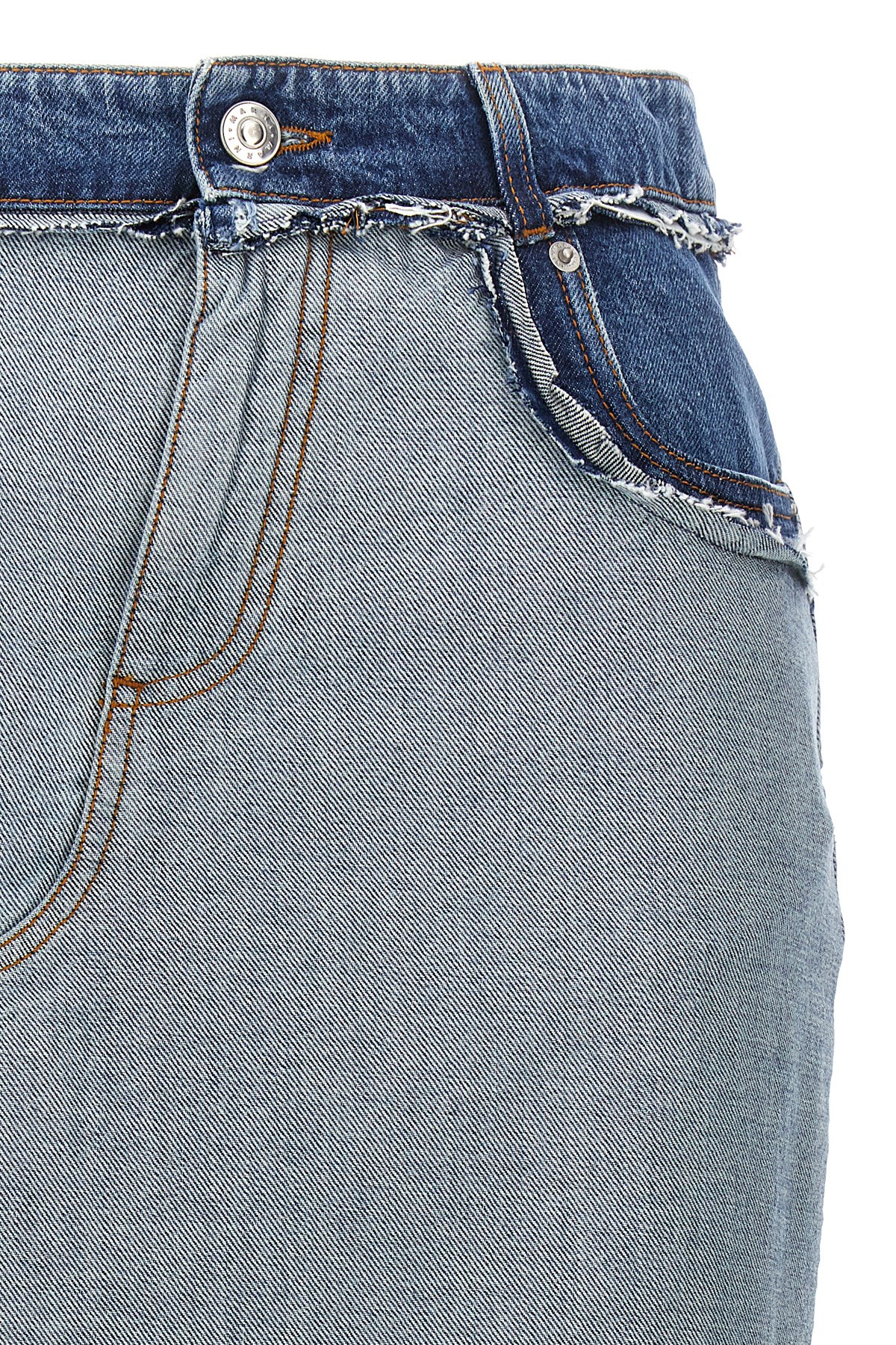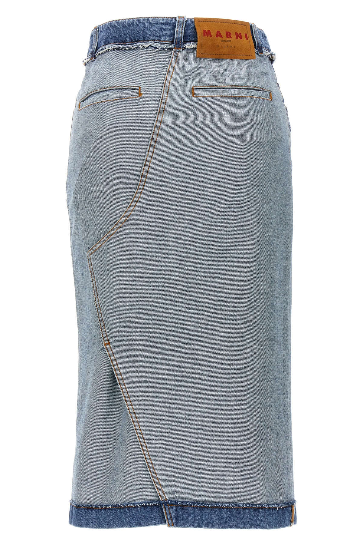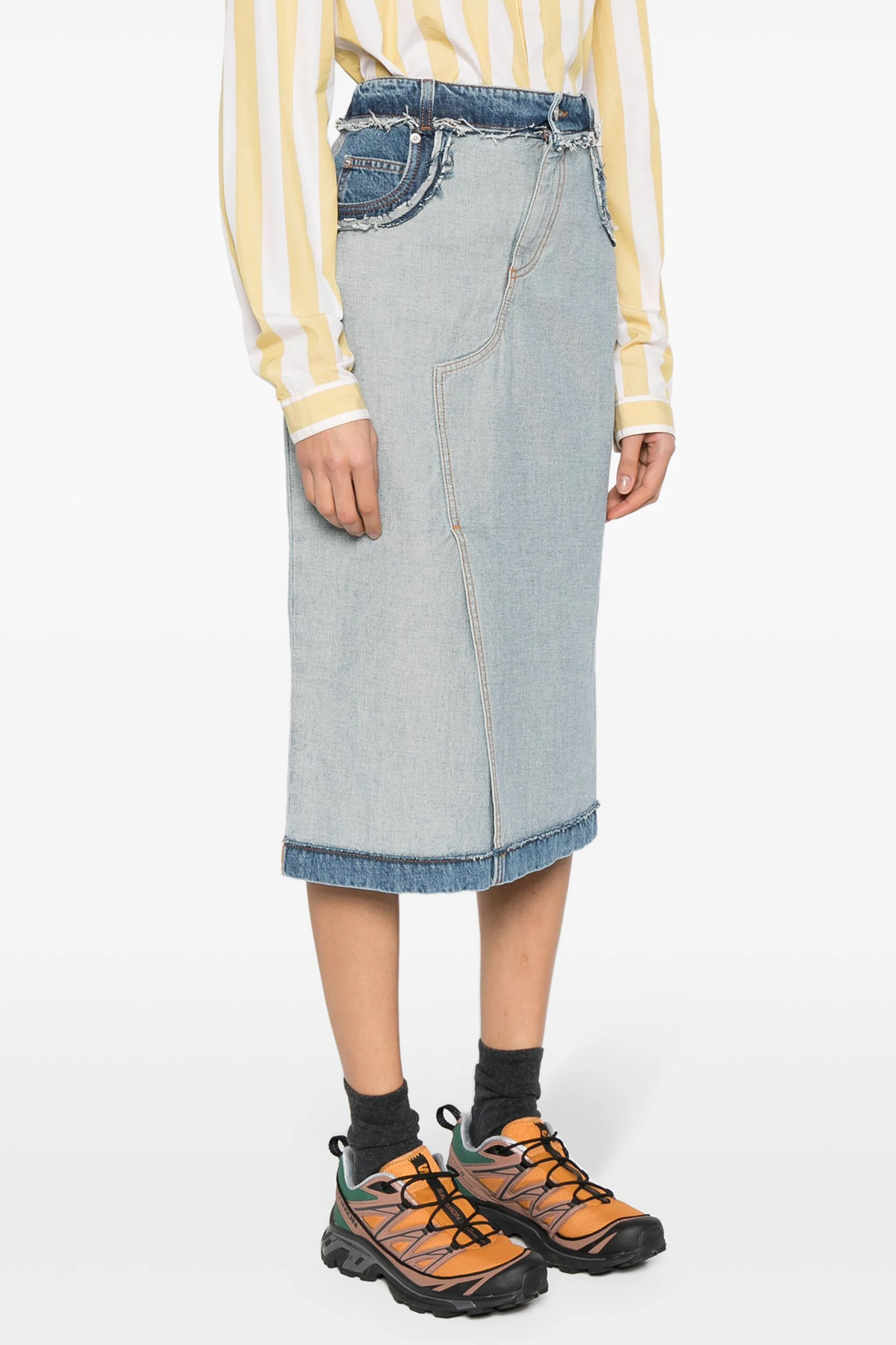 Midi skirt in reversed effect denim with frayed hems, split at the back.