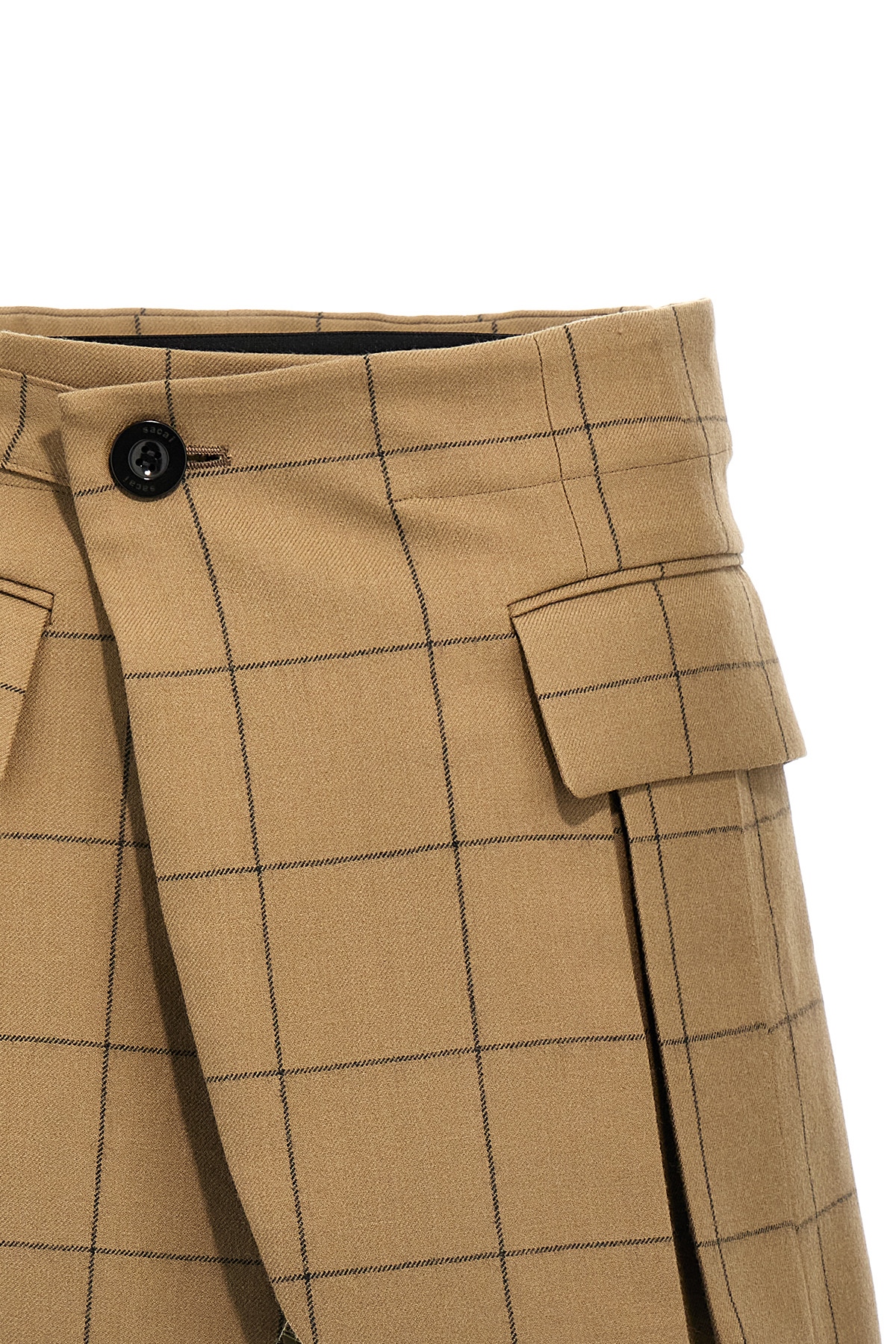 'Windowpane' check wool skort, inner shorts, wallet closure with buttons, pockets.