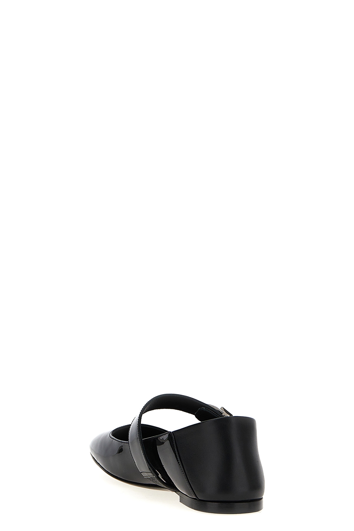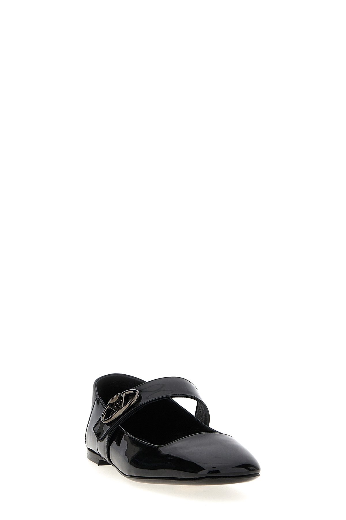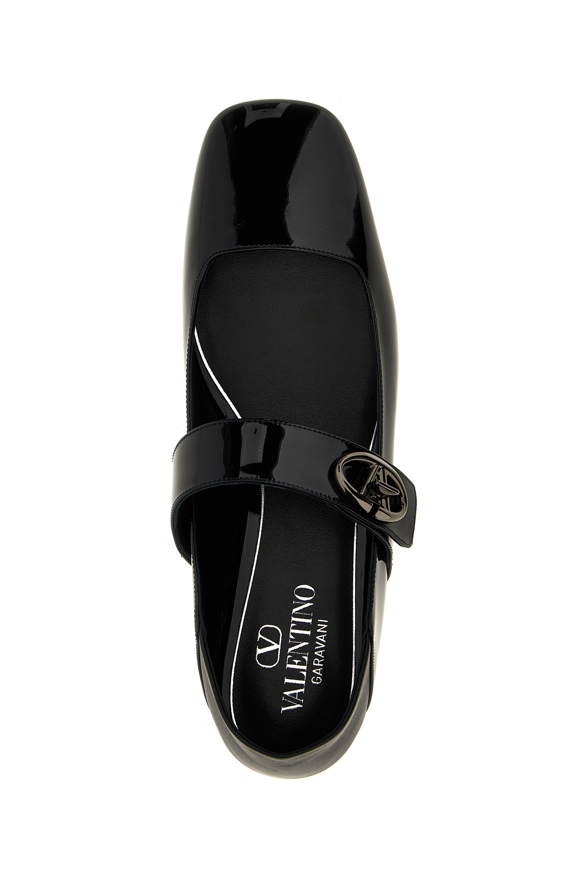 Patent leather ballet flats with strap with 'VLogo Locker', reclining nappa leather heel, leather sole.