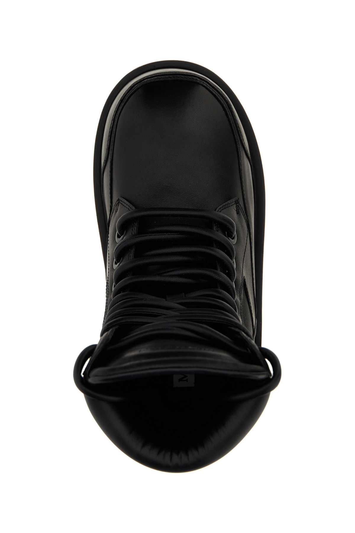Nappa ankle boots with laces, rubber sole, embossed logo on the back.