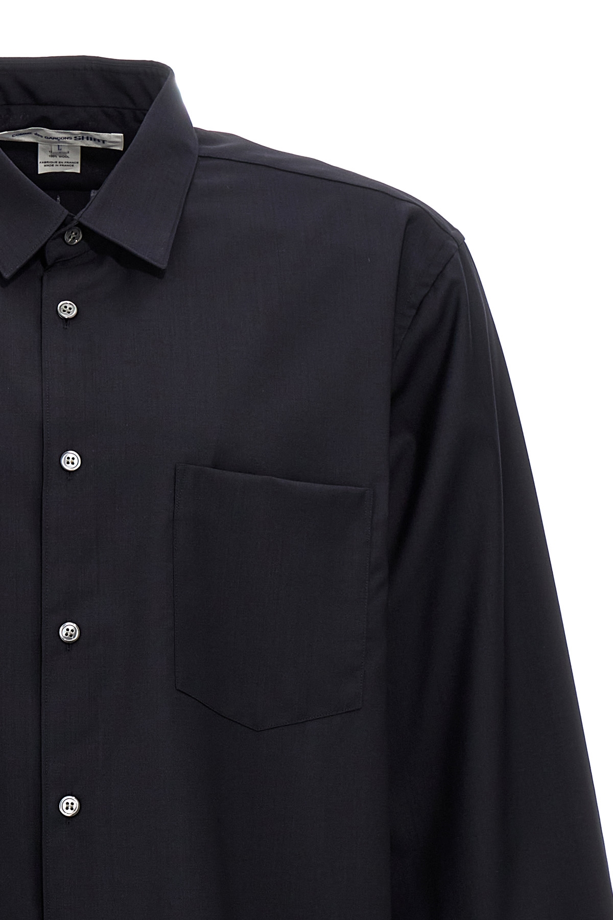 'Forever' wool shirt, front pocket, button closure, long cuffed sleeves.