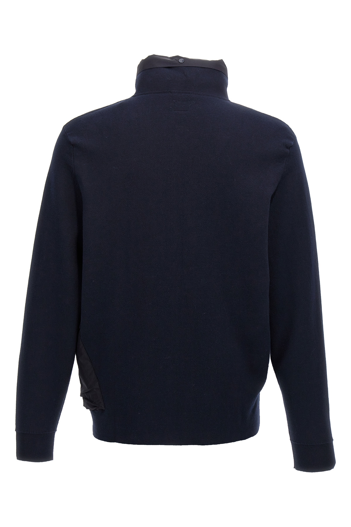 'Metropolis Series' cotton knit cardigan with removable hood and zip closure. Equipped with a side nylon pocket in which to close the garment.