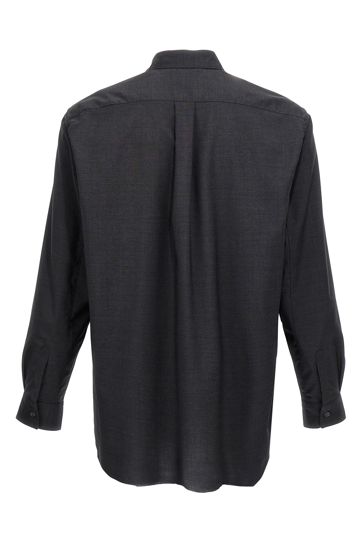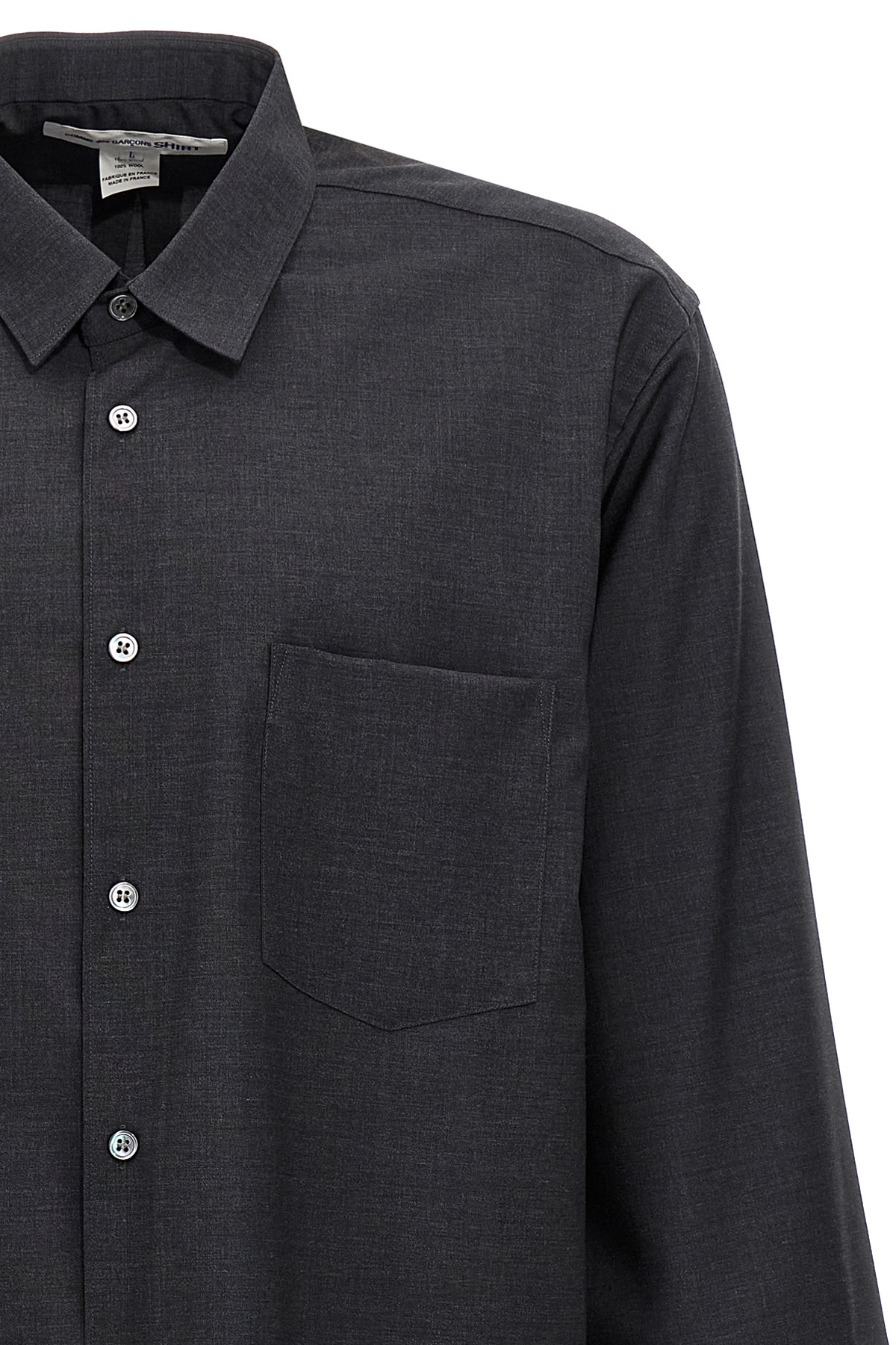 'Forever' wool shirt, front pocket, button closure, long cuffed sleeves.
