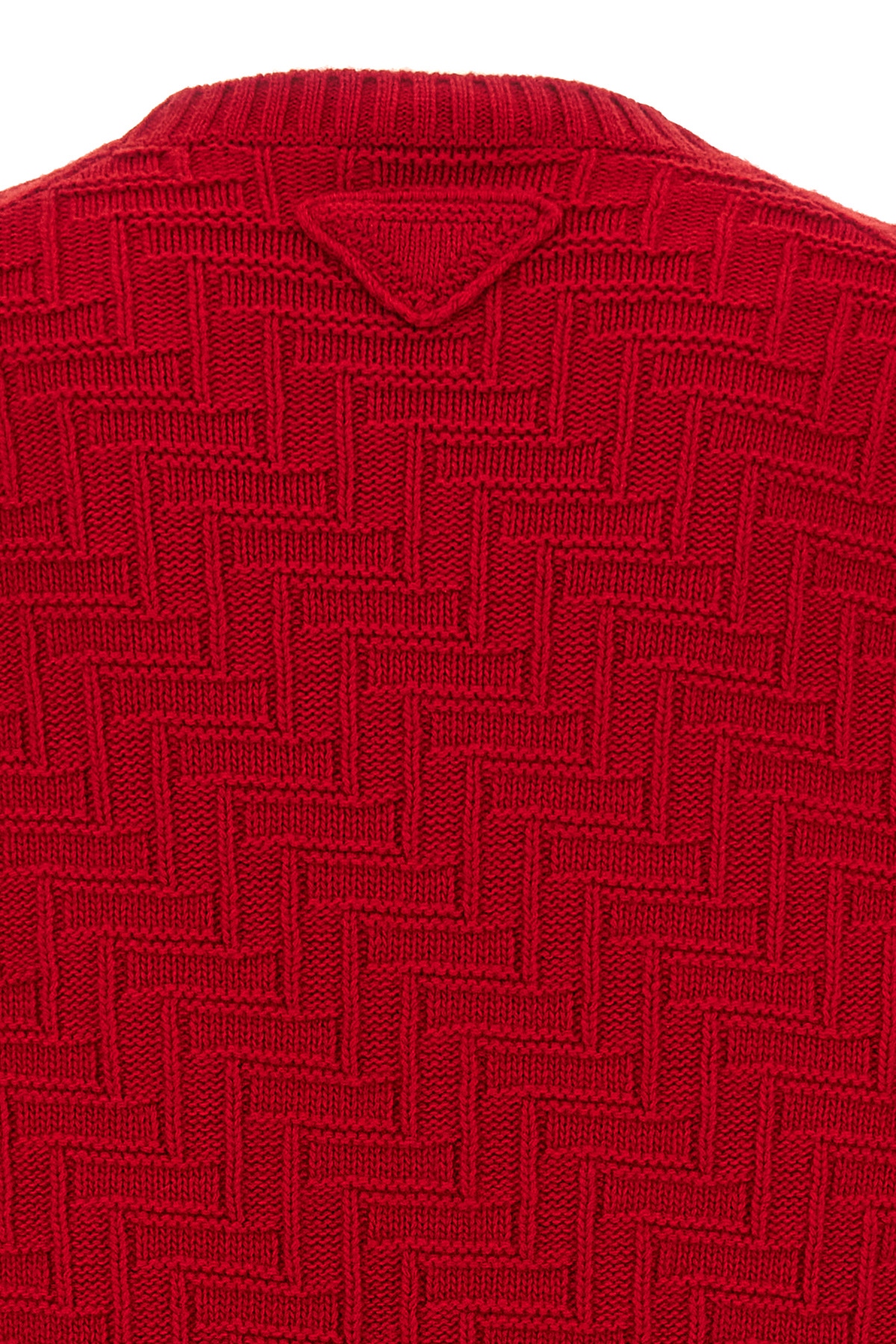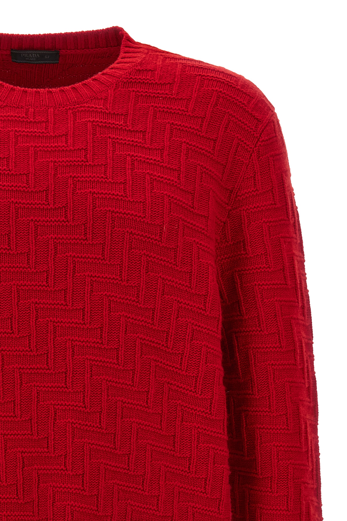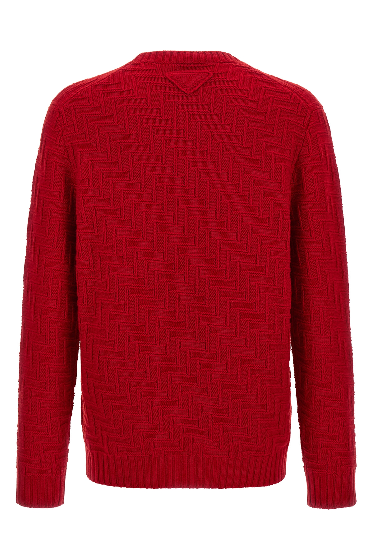 Crew neck sweater in knitted wool and cashmere with long cuffed sleeves.