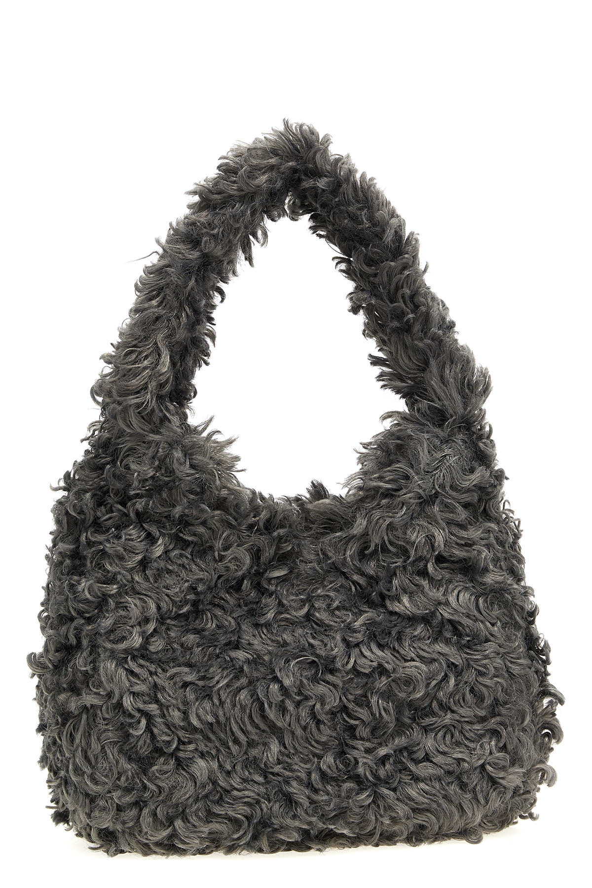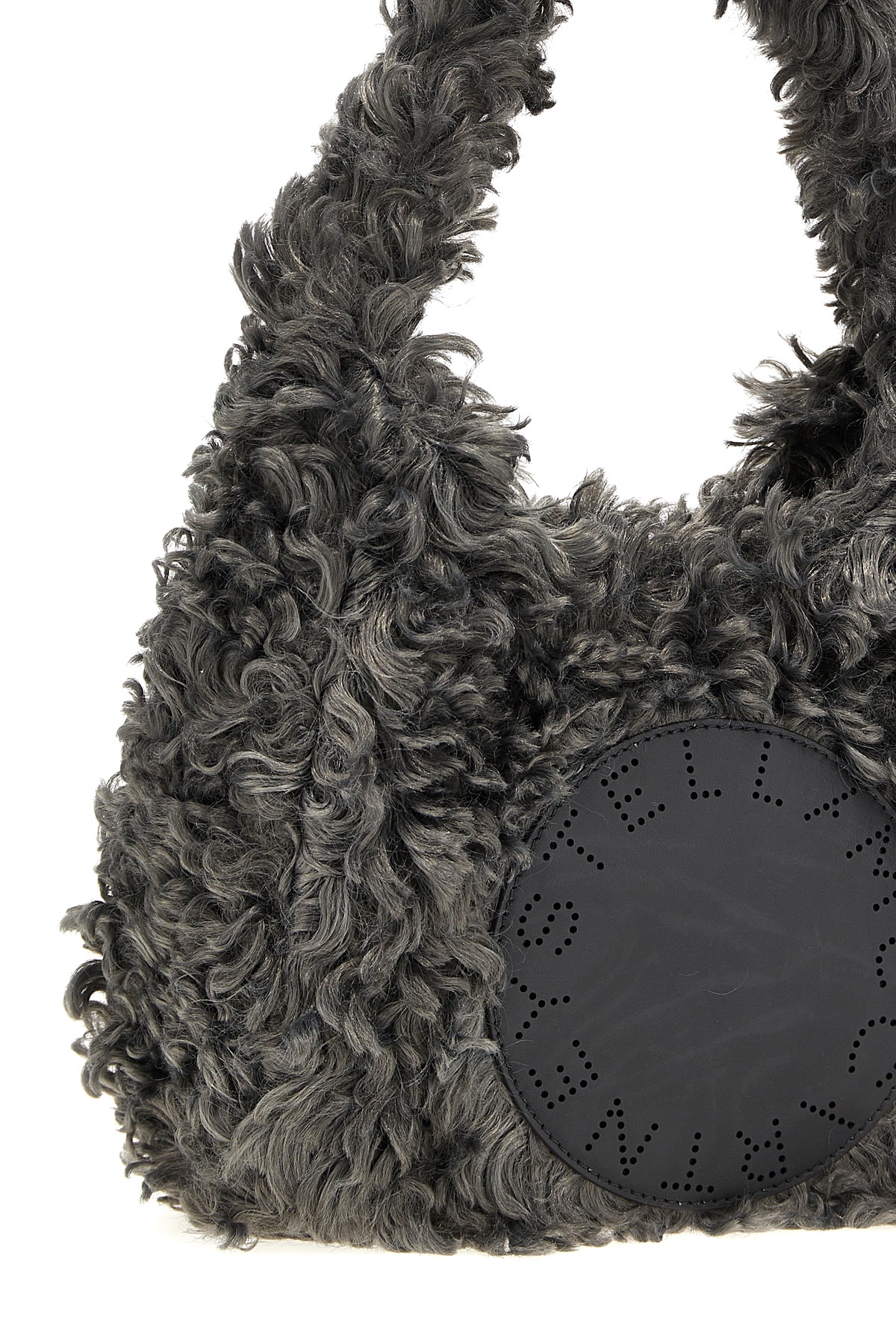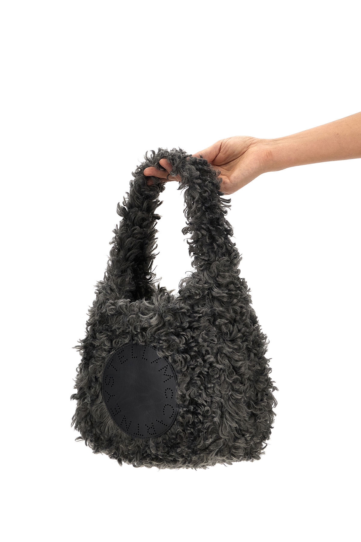 Small 'Tote Hobo' shoulder bag in teddy fabric with front perforated logo, fixed handle, magnetic closure.