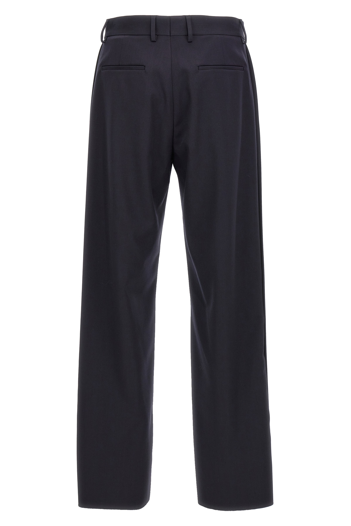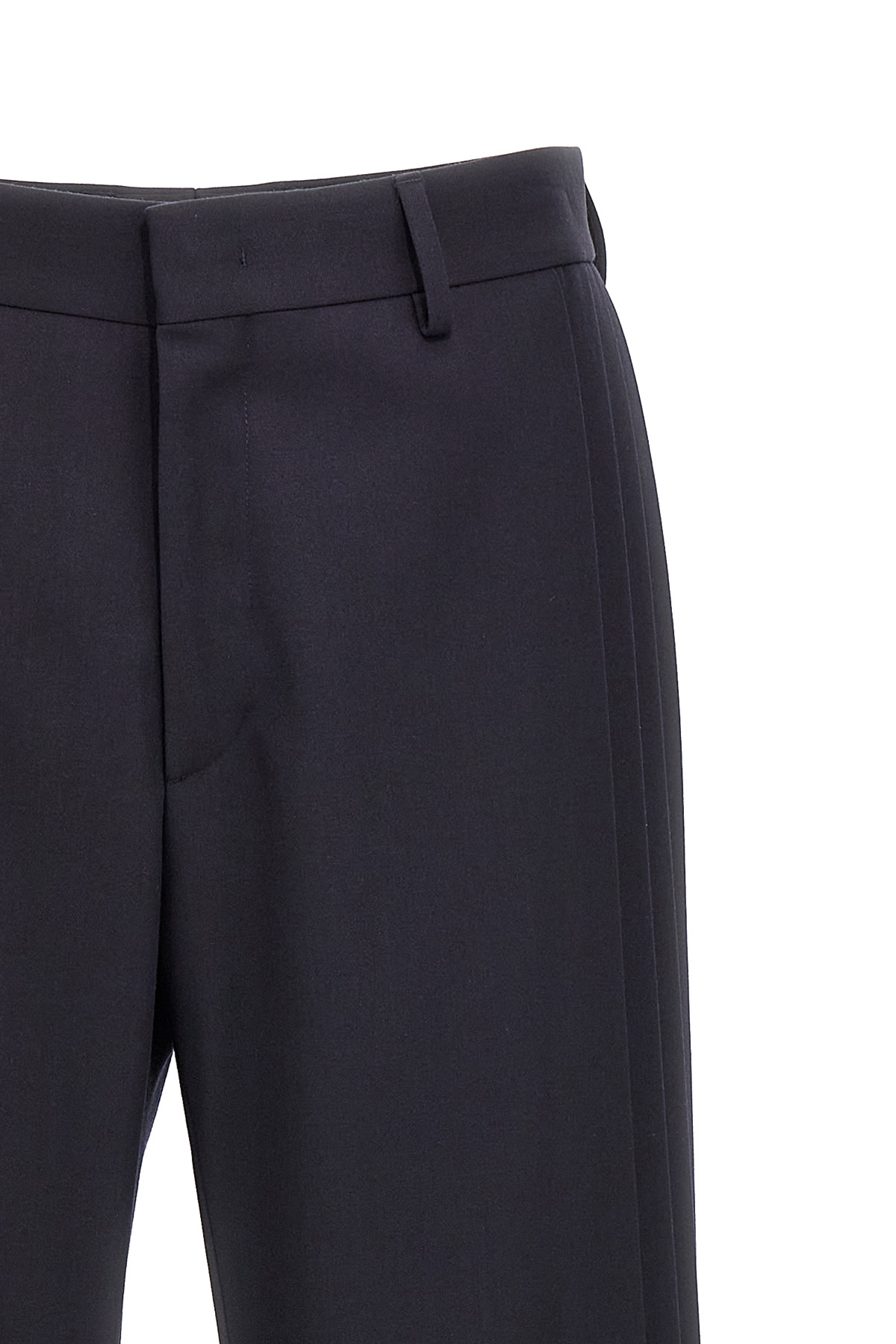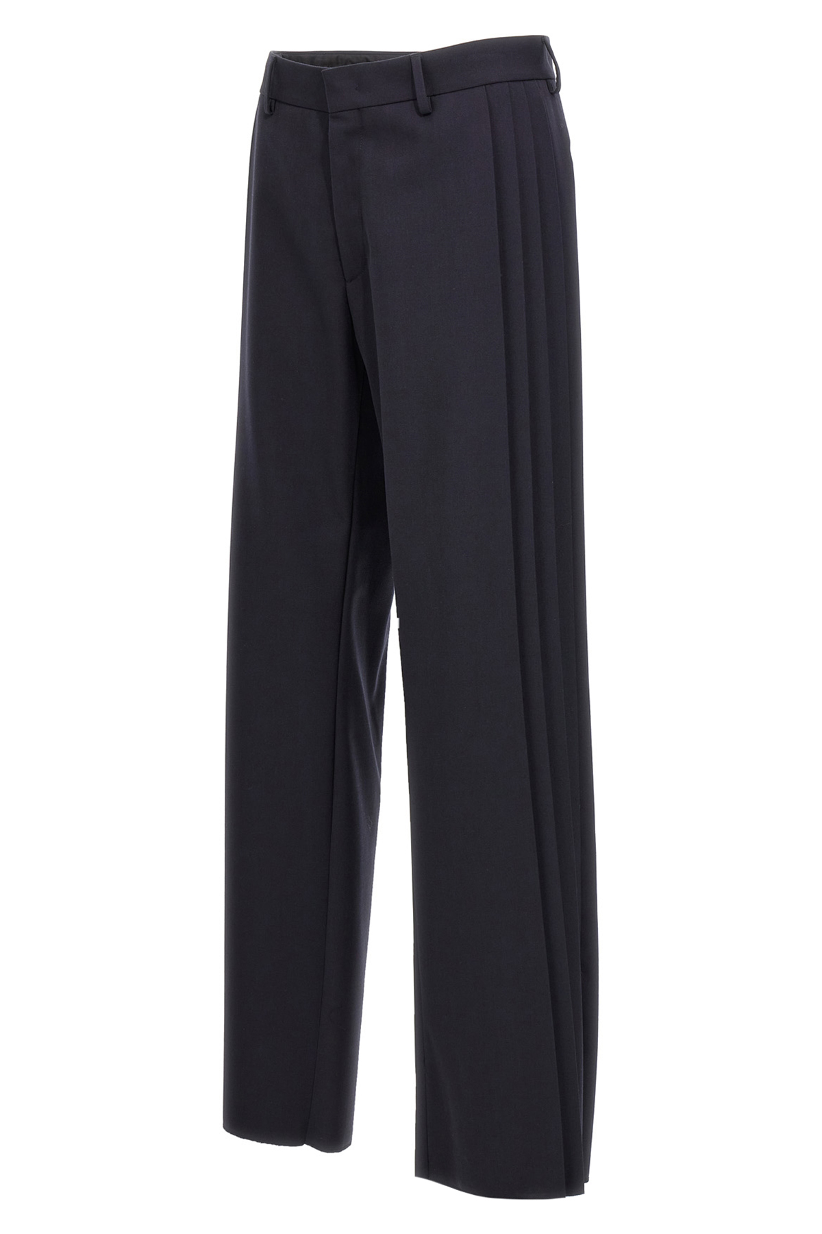 Wool crepe blend pants, pleats on the sides, hook and button zip closure, pockets.