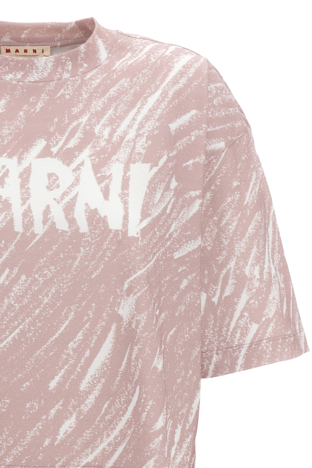 Cropped T-shirt in crayon effect cotton with front logo, crewneck, and short sleeves.