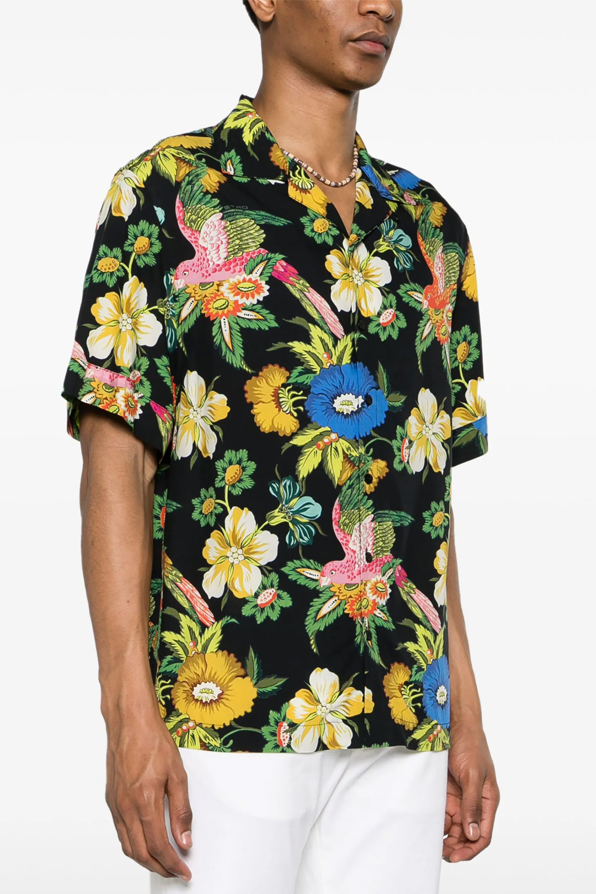 Zanzibar viscose shirt with all-over print, short sleeves and button closure.