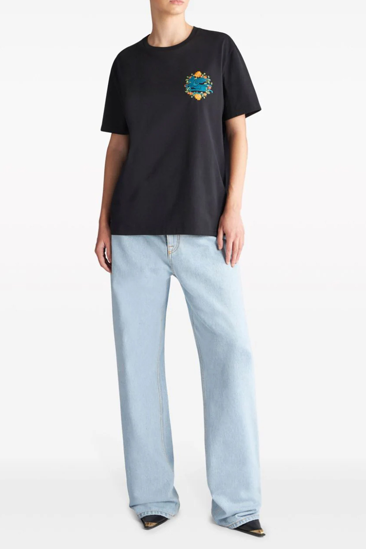 로고 자수 티셔츠