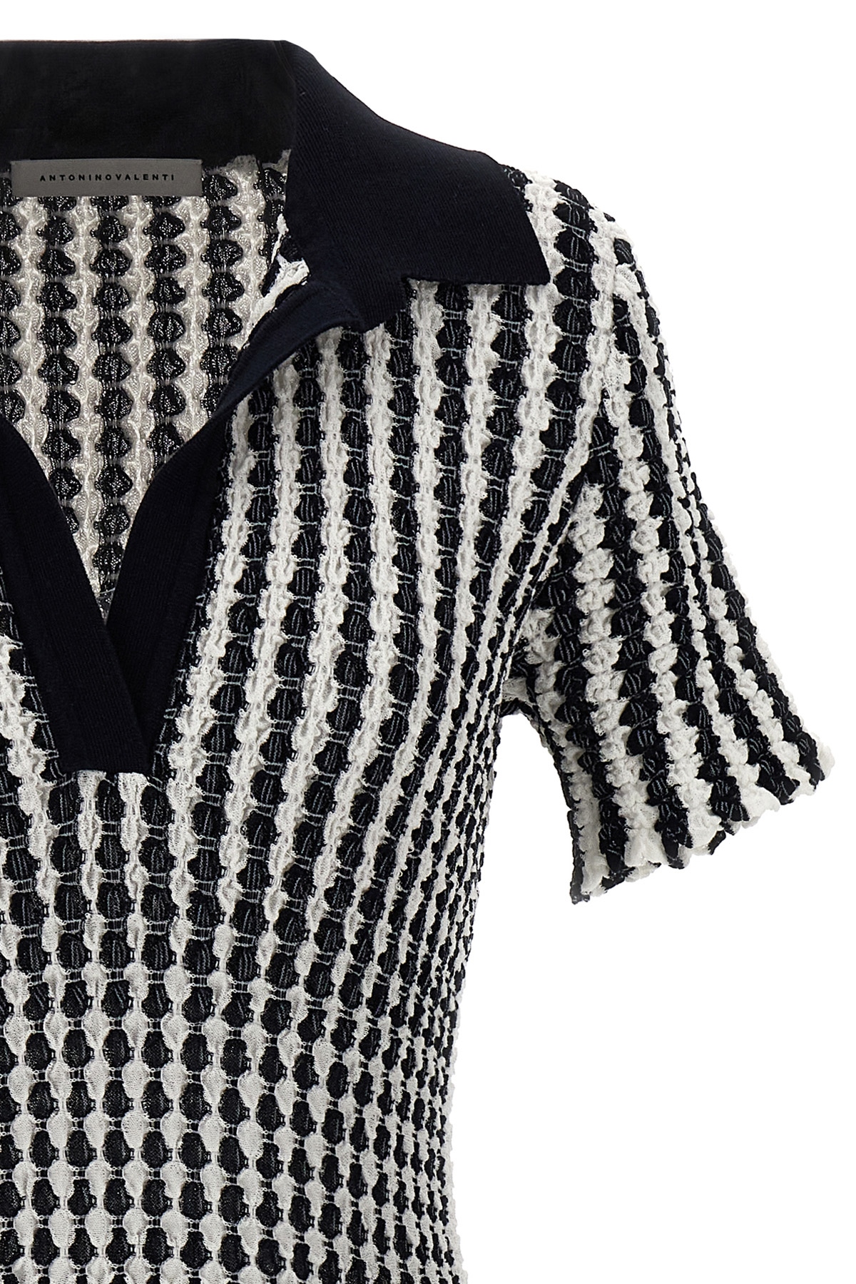 'Marylin' short and screwed dress in cotton knit with short sleeves, V-neck and polo collar.
