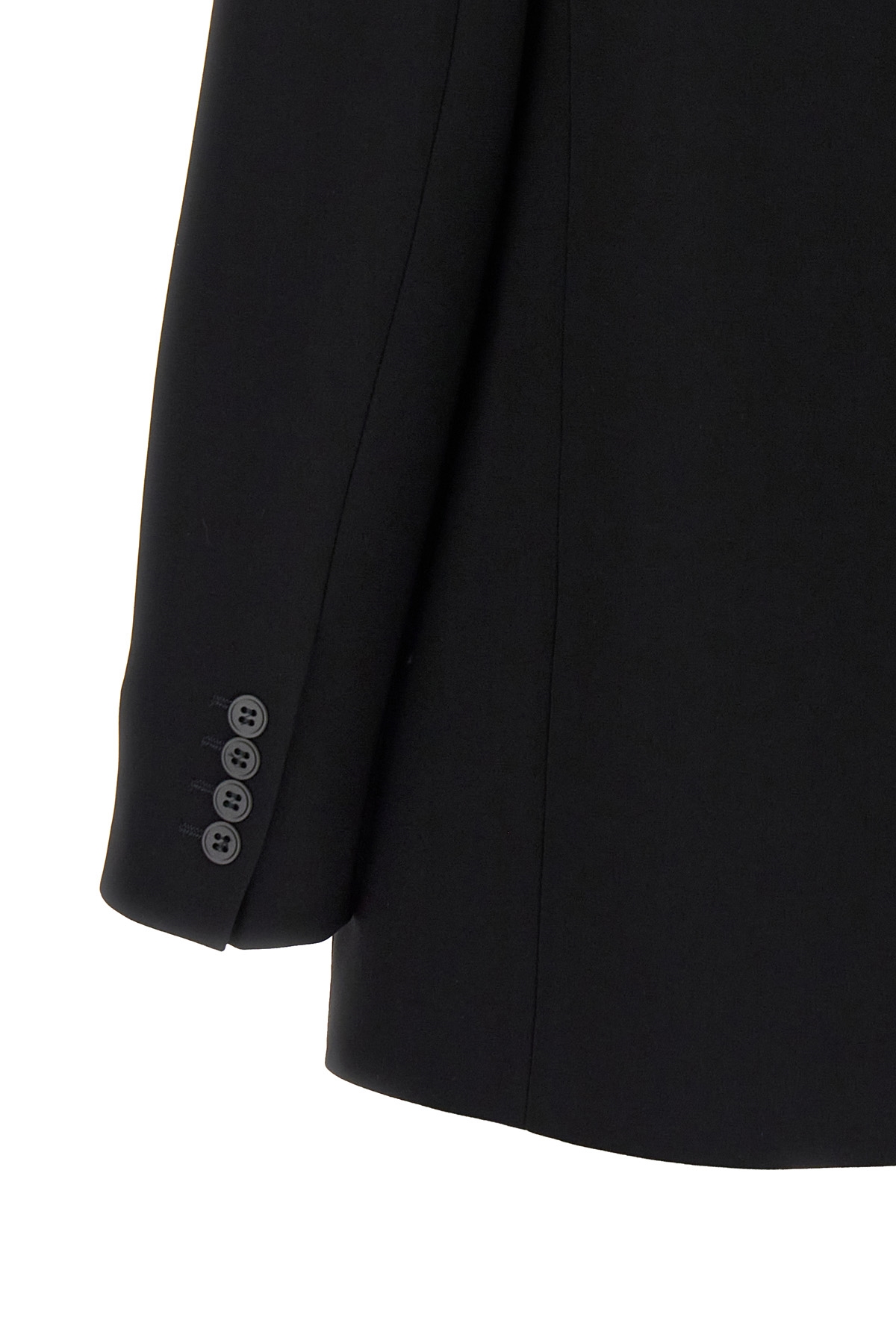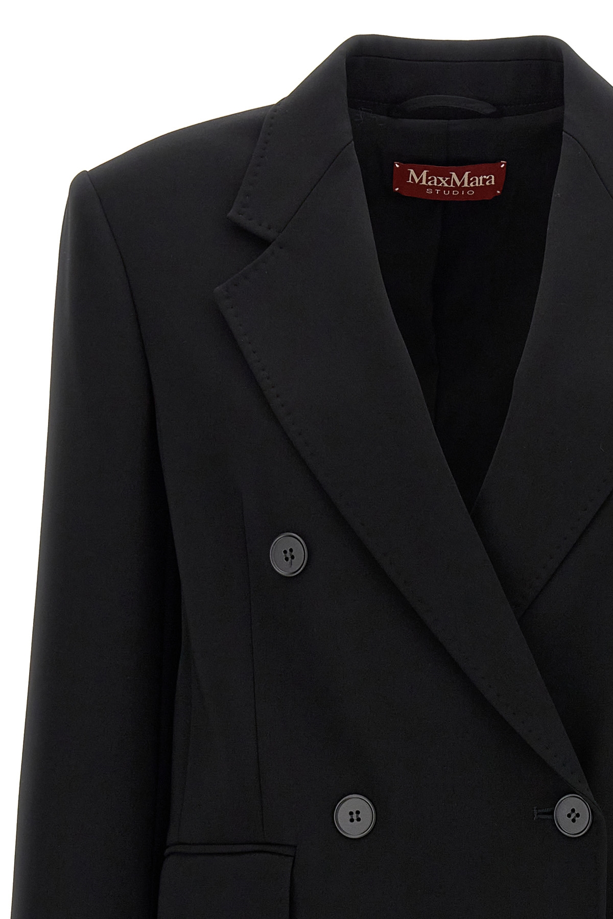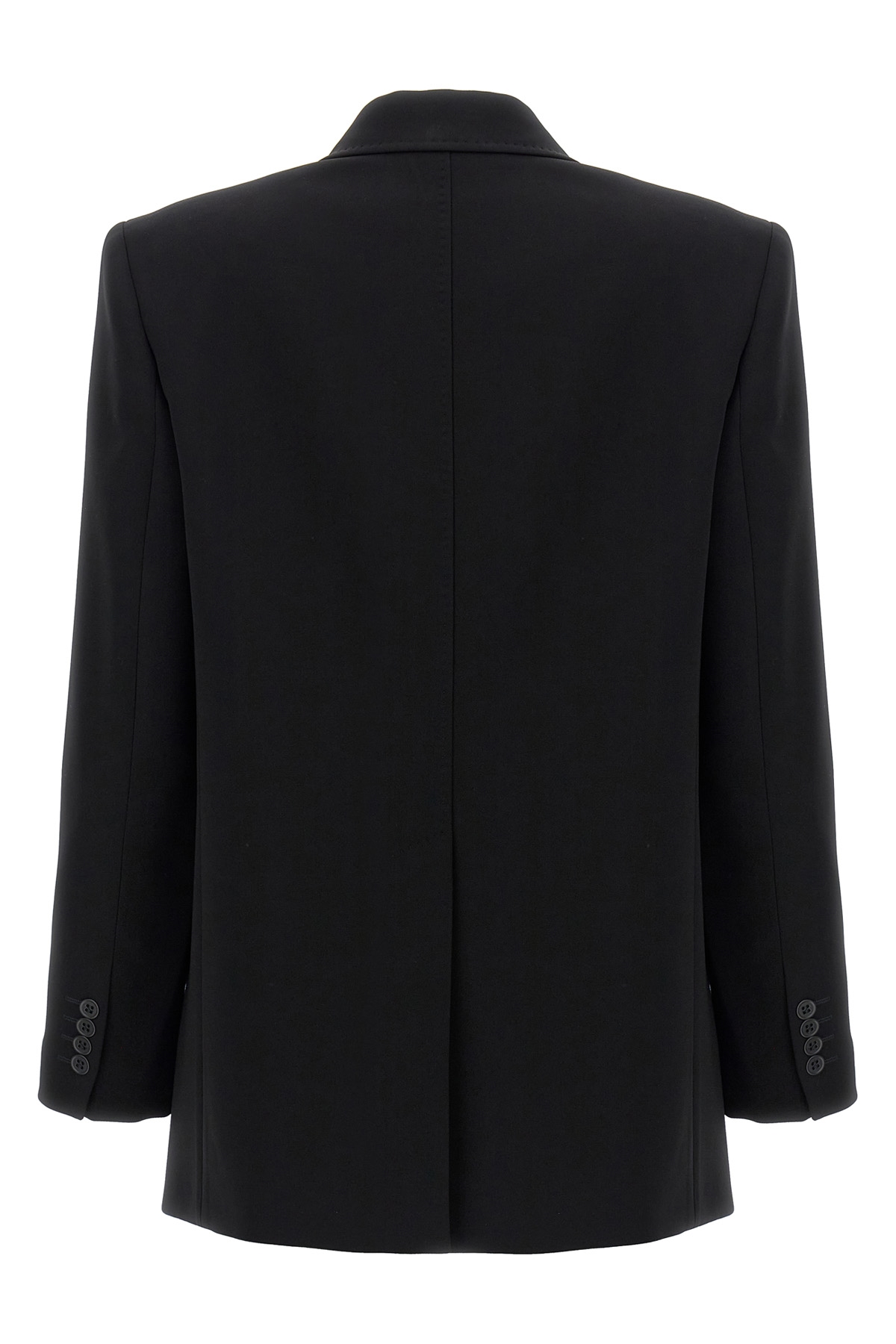 'Mirella' double-breasted cady blazer with button closure, flap pockets, long sleeves, back vent.