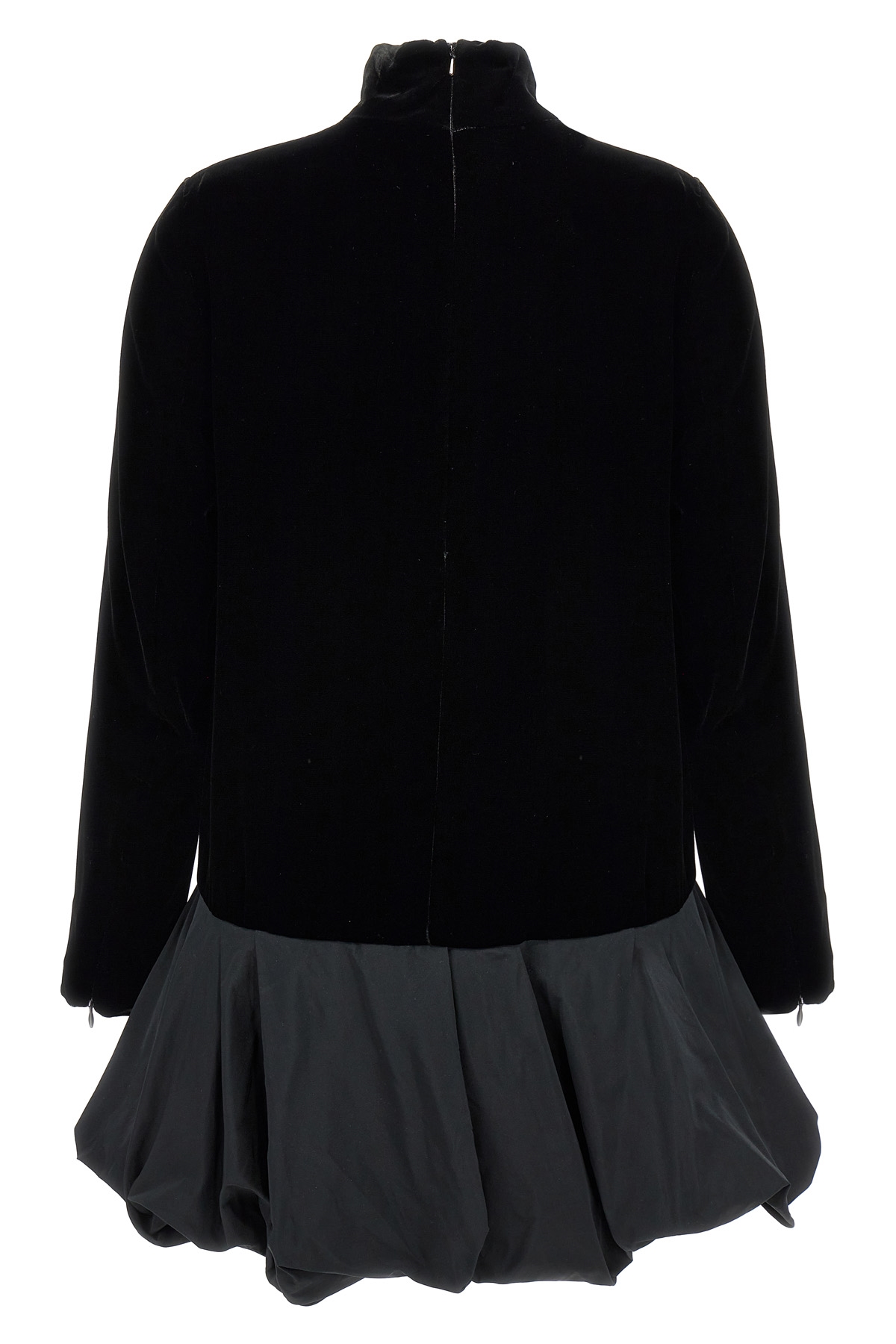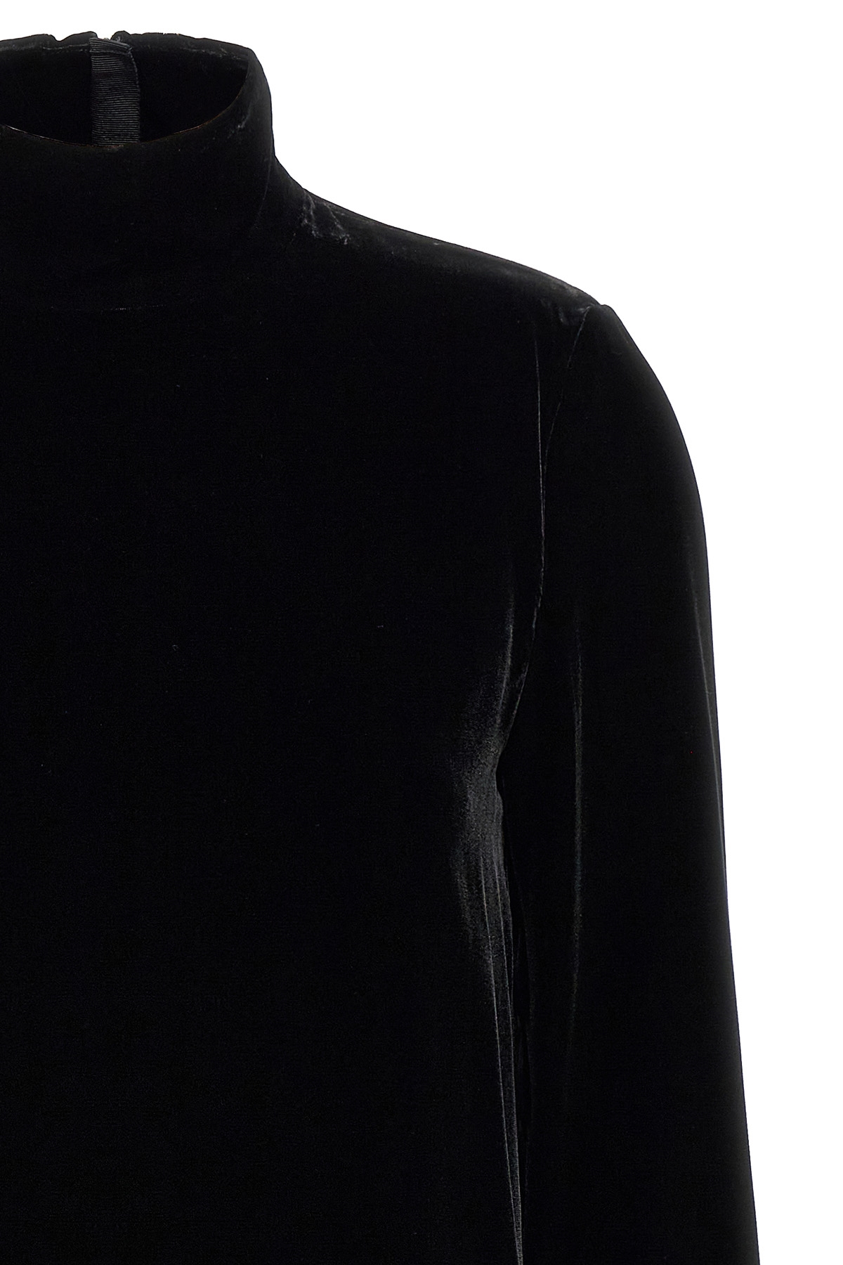 'Osso' viscose velvet and cupro dress, high neck, long zip sleeves, microfaille draped skirt, back zip closure.