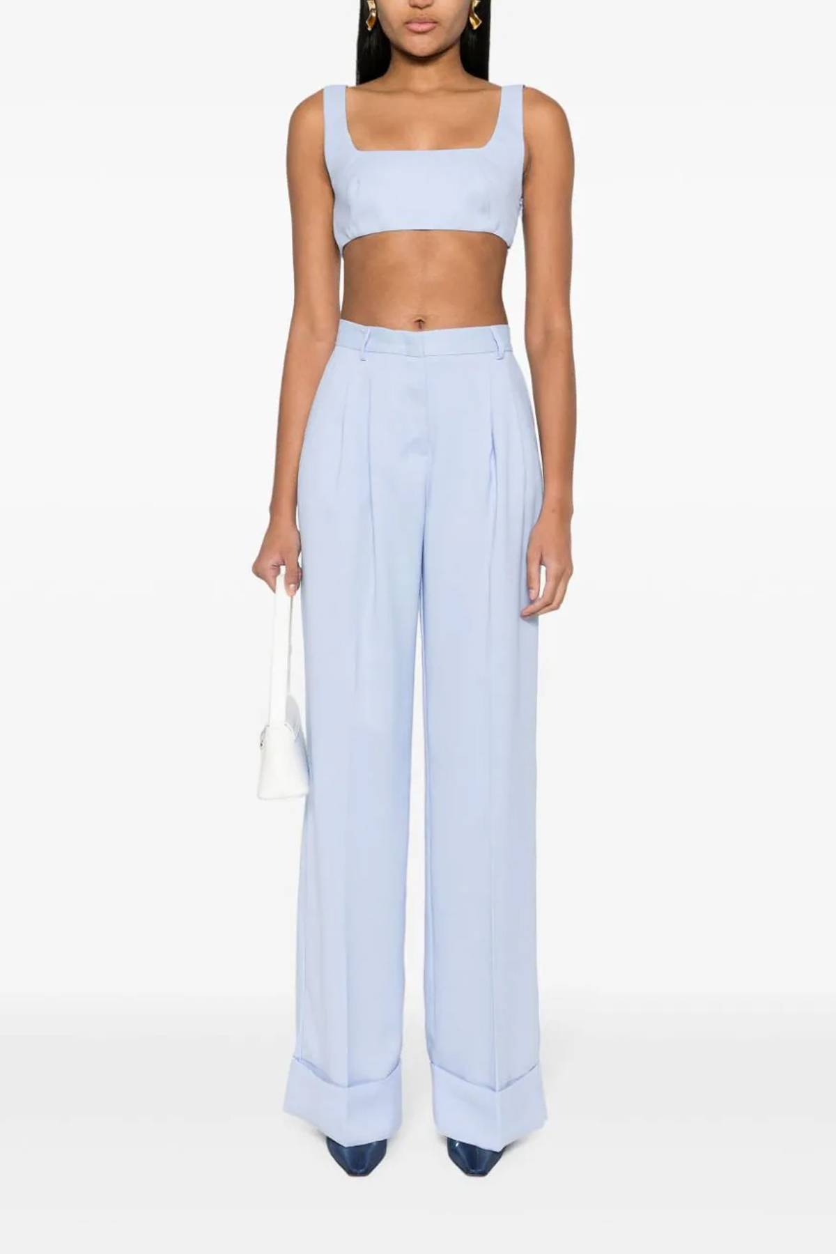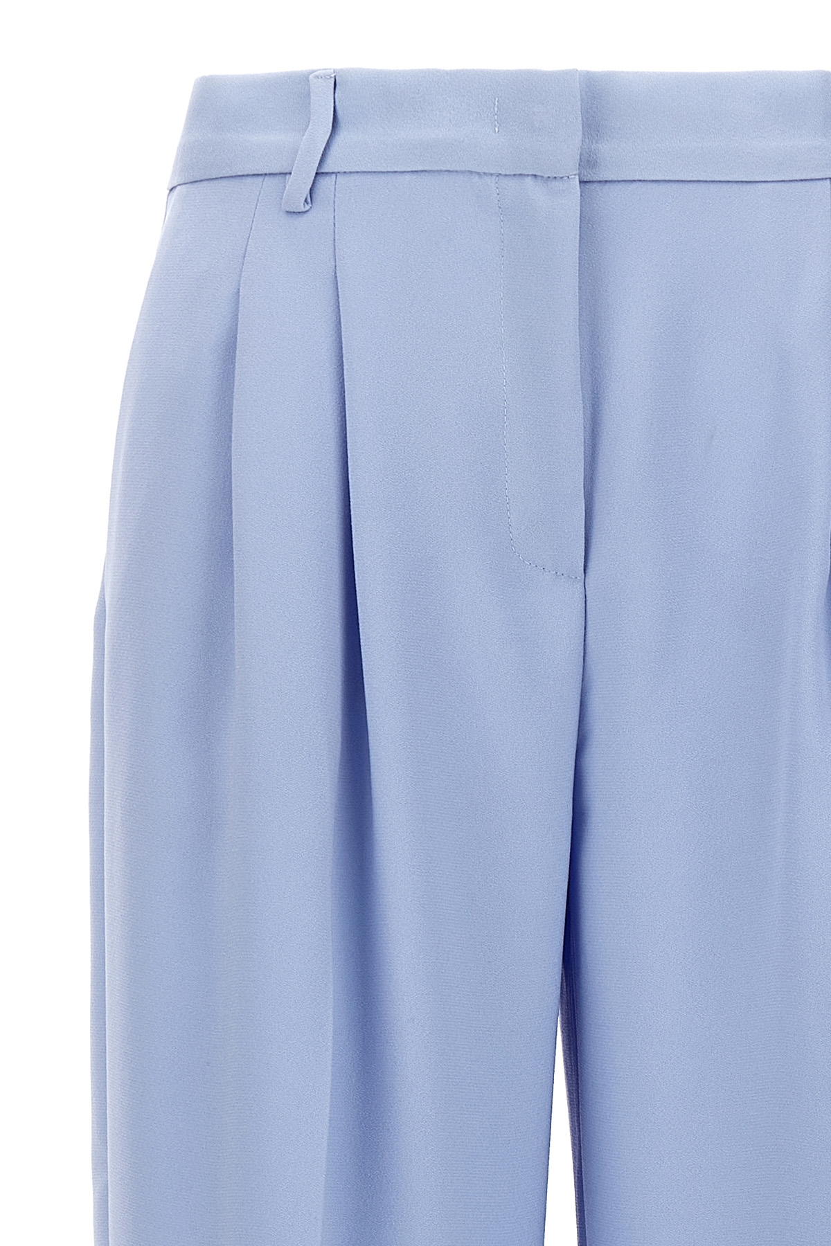 'Gladys' satin crepe pants, hook and button zip closure, pin tucks and stretched pleat, wide leg and turned-up hem, pockets.