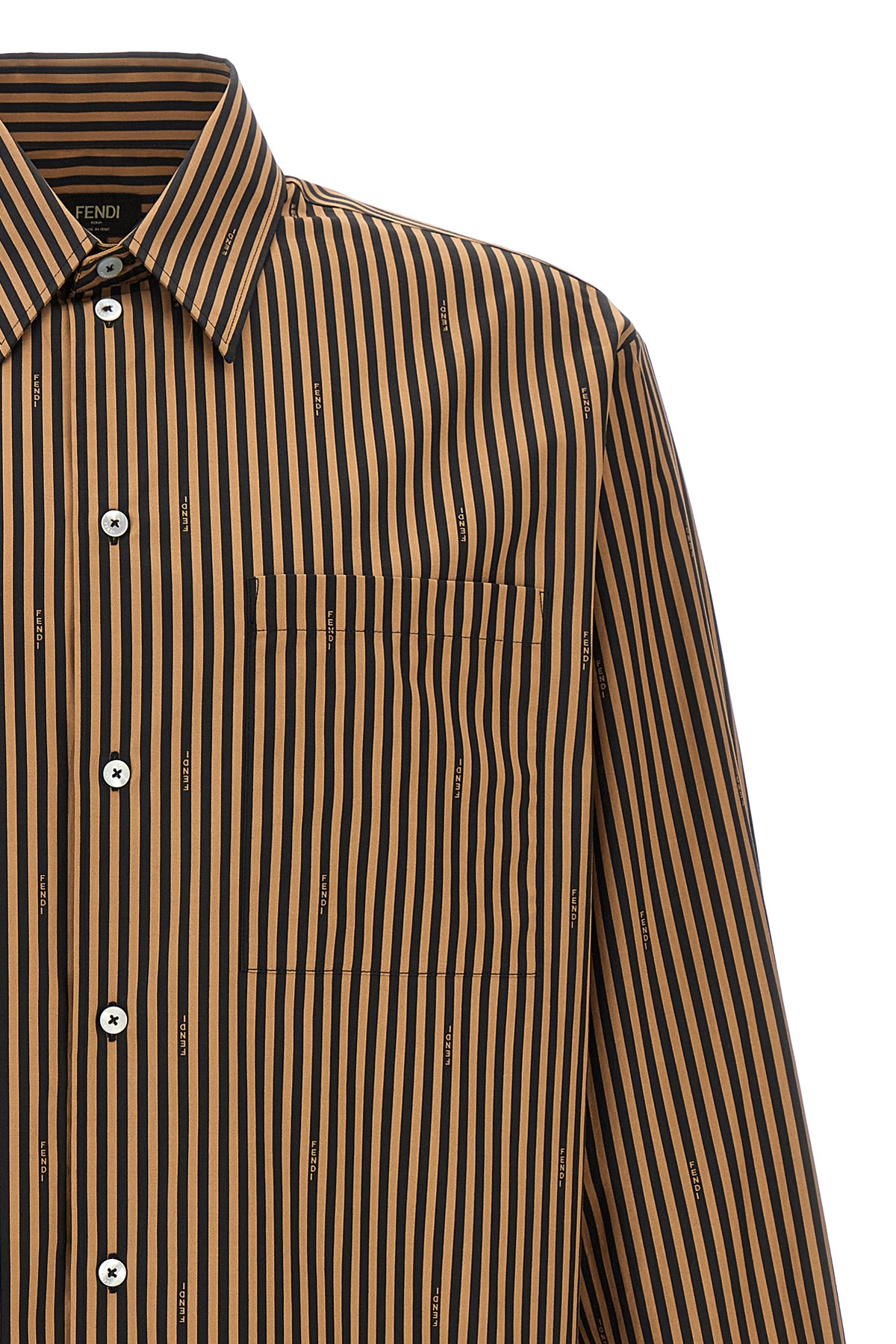 Pequin striped cotton shirt, front pocket, button closure, long cuffed sleeves.