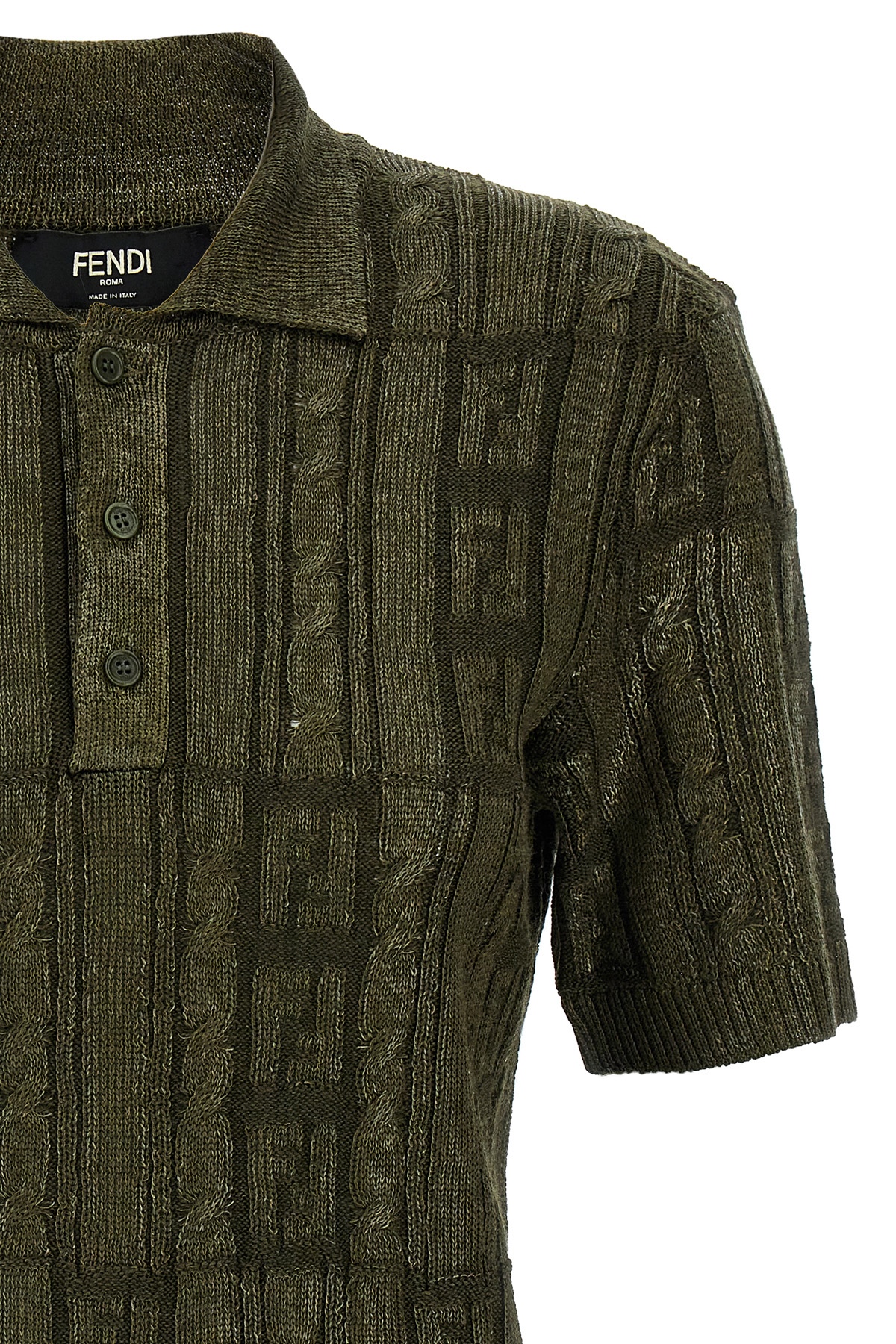 Braid wool polo shirt with 'FF' logo, short sleeves.