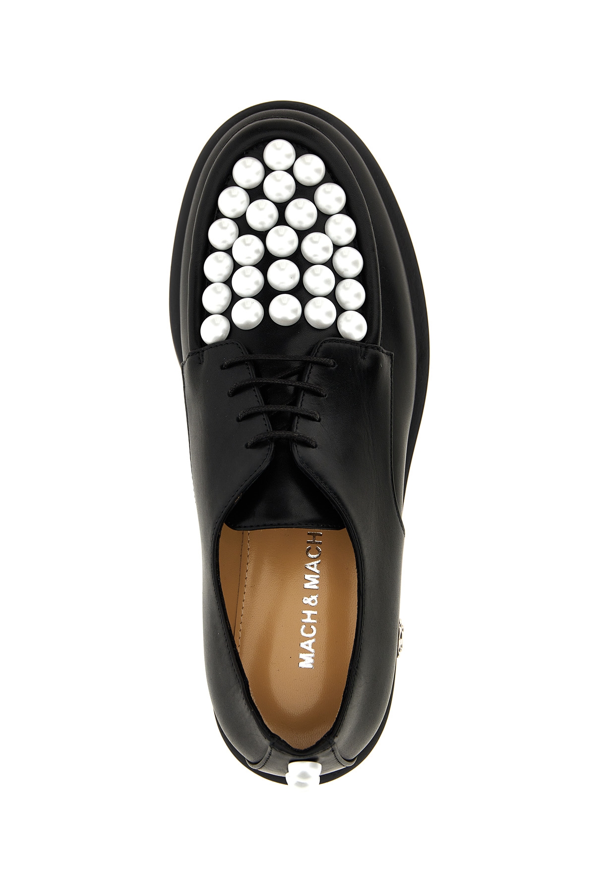 'Sirene' leather lace-up shoes with contrast bead applique, laces and leather sole.