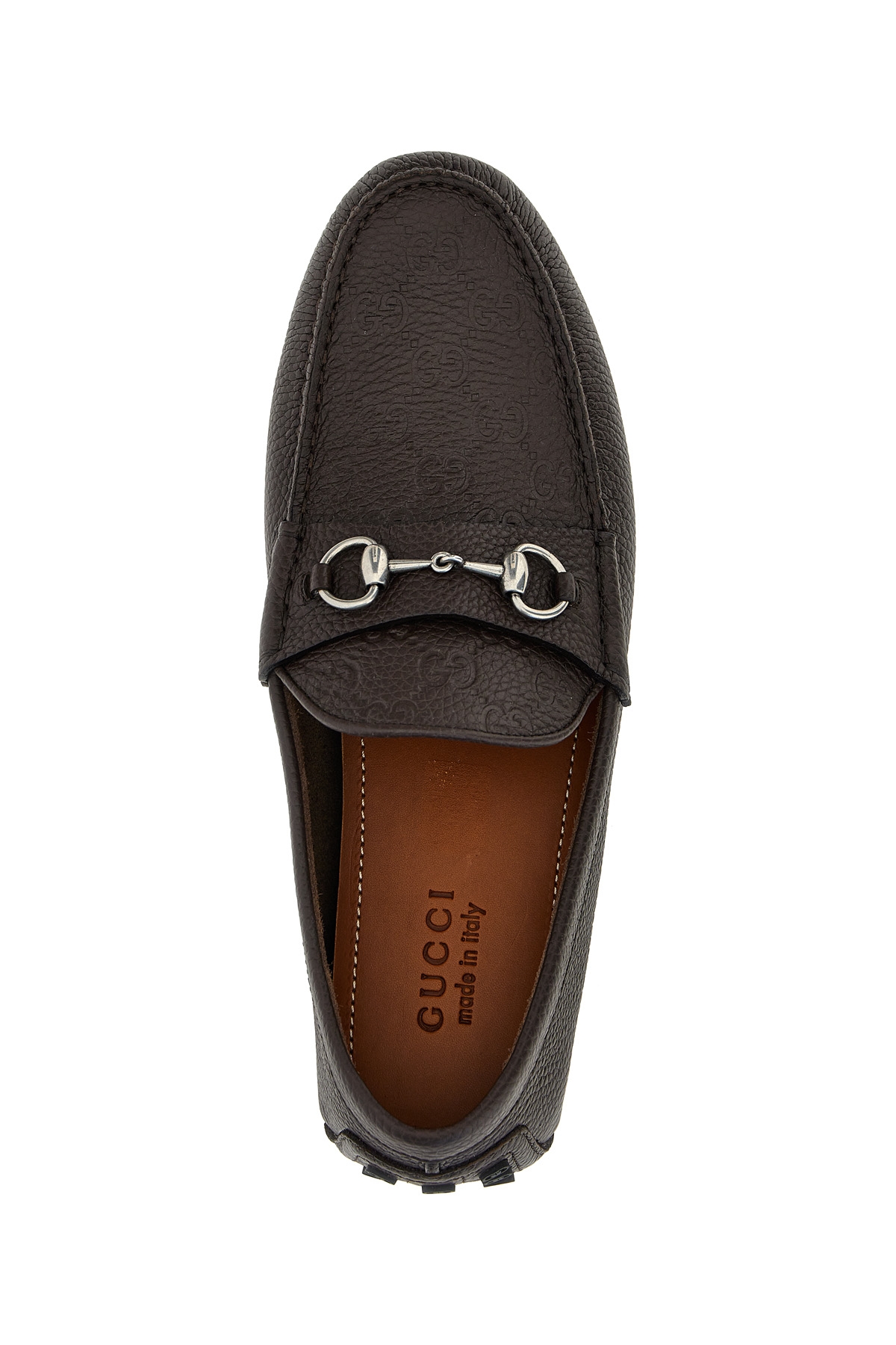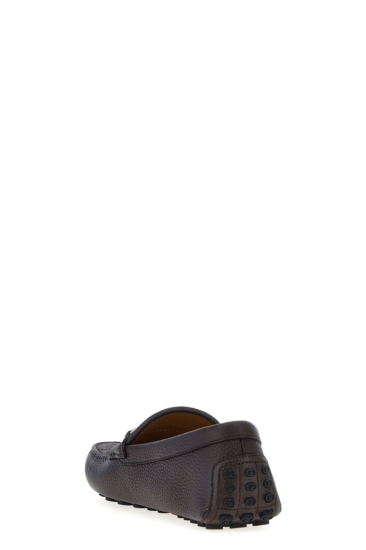 Leather driver loafers with embossed GG logo detail on the tray, metal 'Morsetto' application, sole with rubber pads.