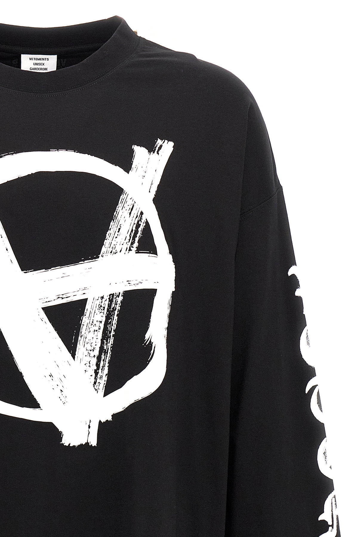 'Double Anarchy' cotton crew neck t-shirt with contrast print, long sleeves.