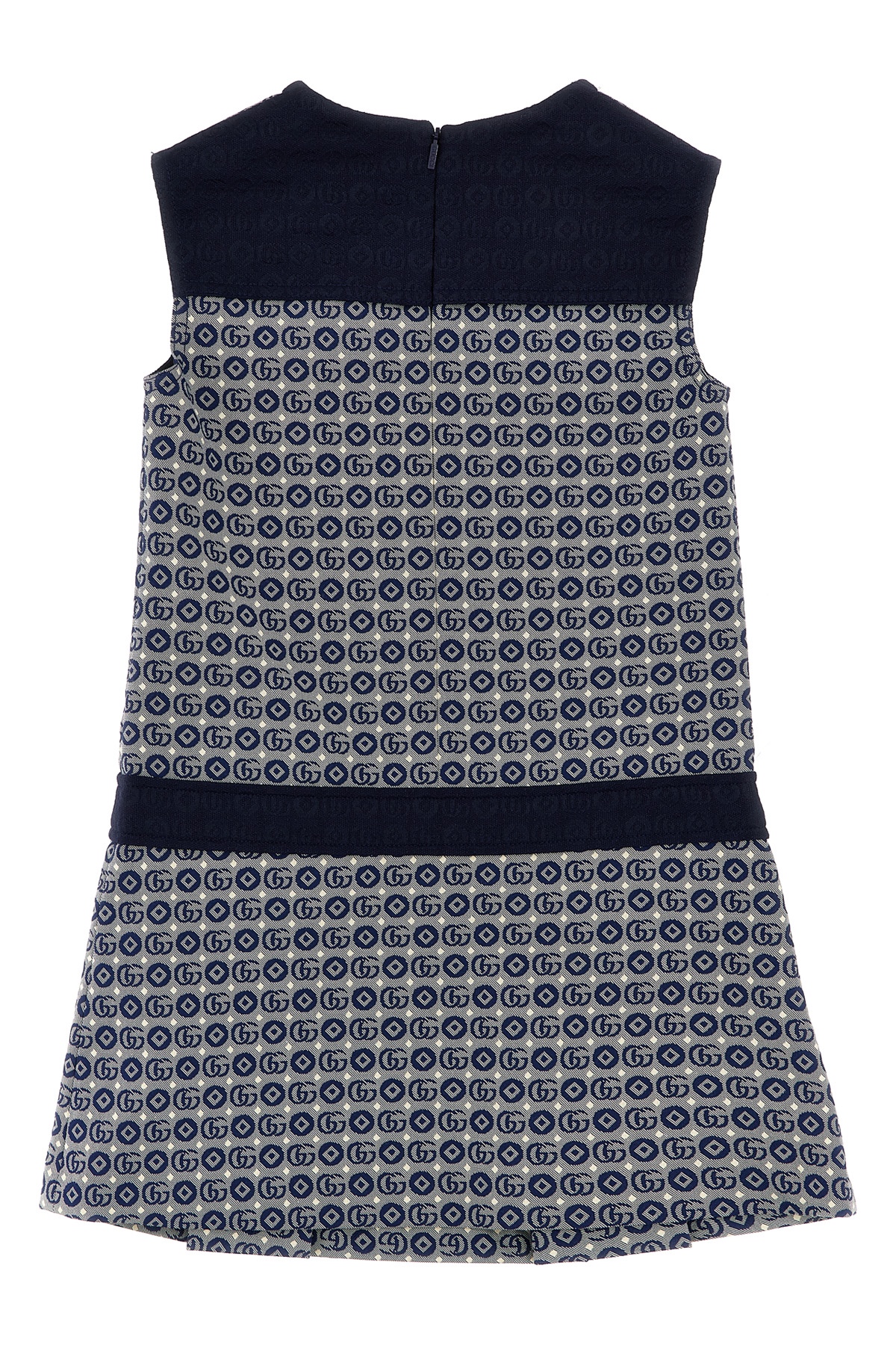 KIDS Sleeveless dress in cotton blend with all-over 'GG' pattern, V-neck, and back zip closure.