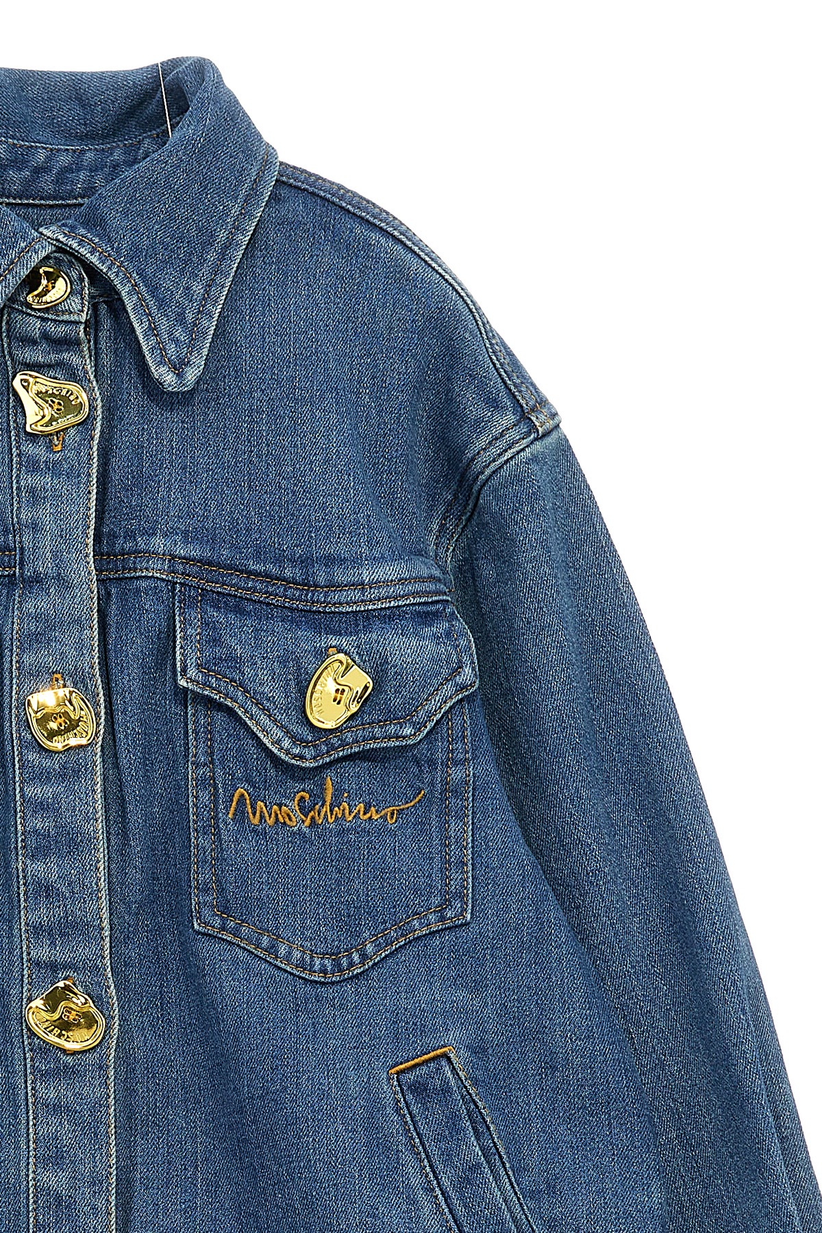 JULIAN KIDS Cotton denim jacket with button detail closure, pockets, front logo embroidery, long cuffed sleeves, and asymmetrical hem.