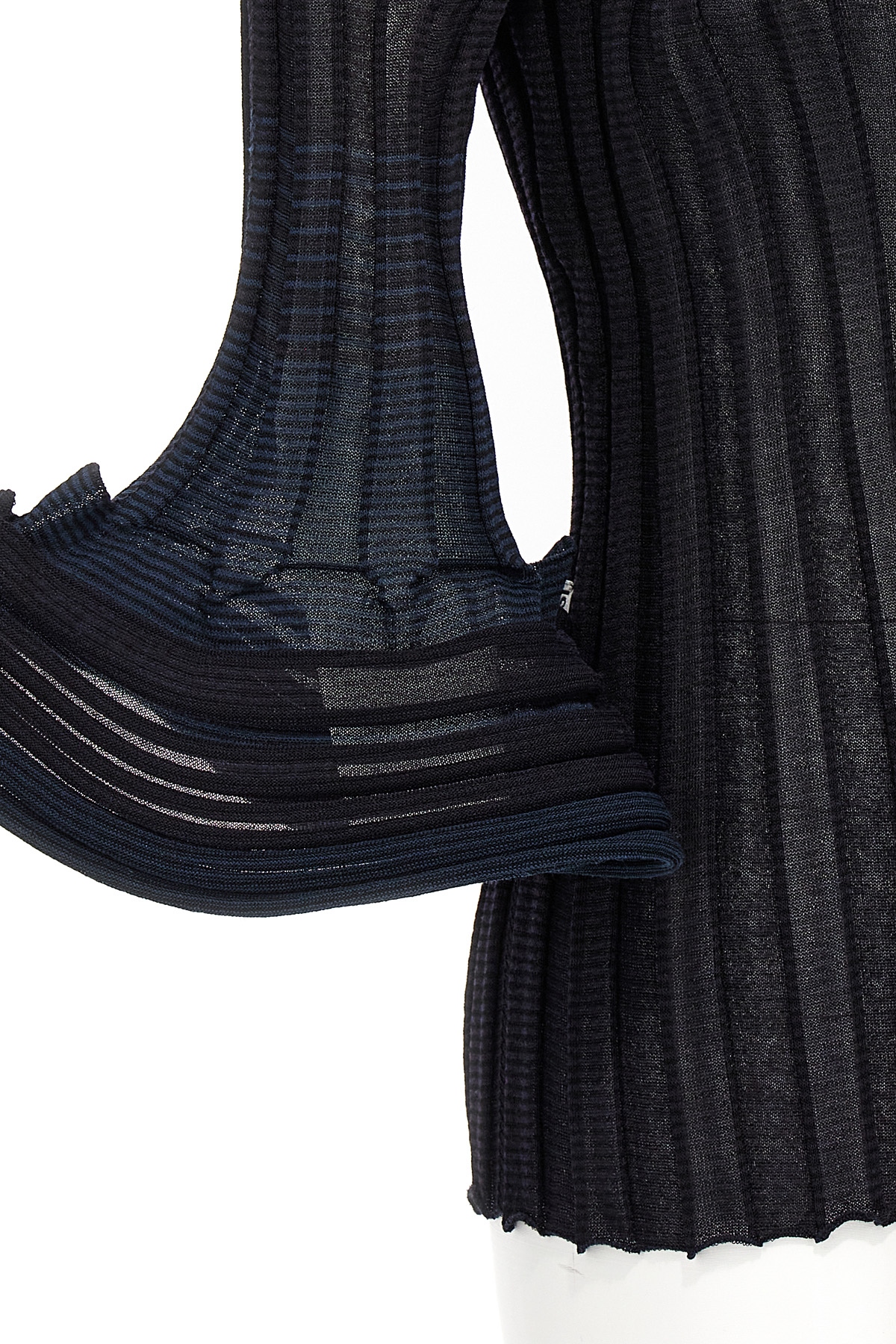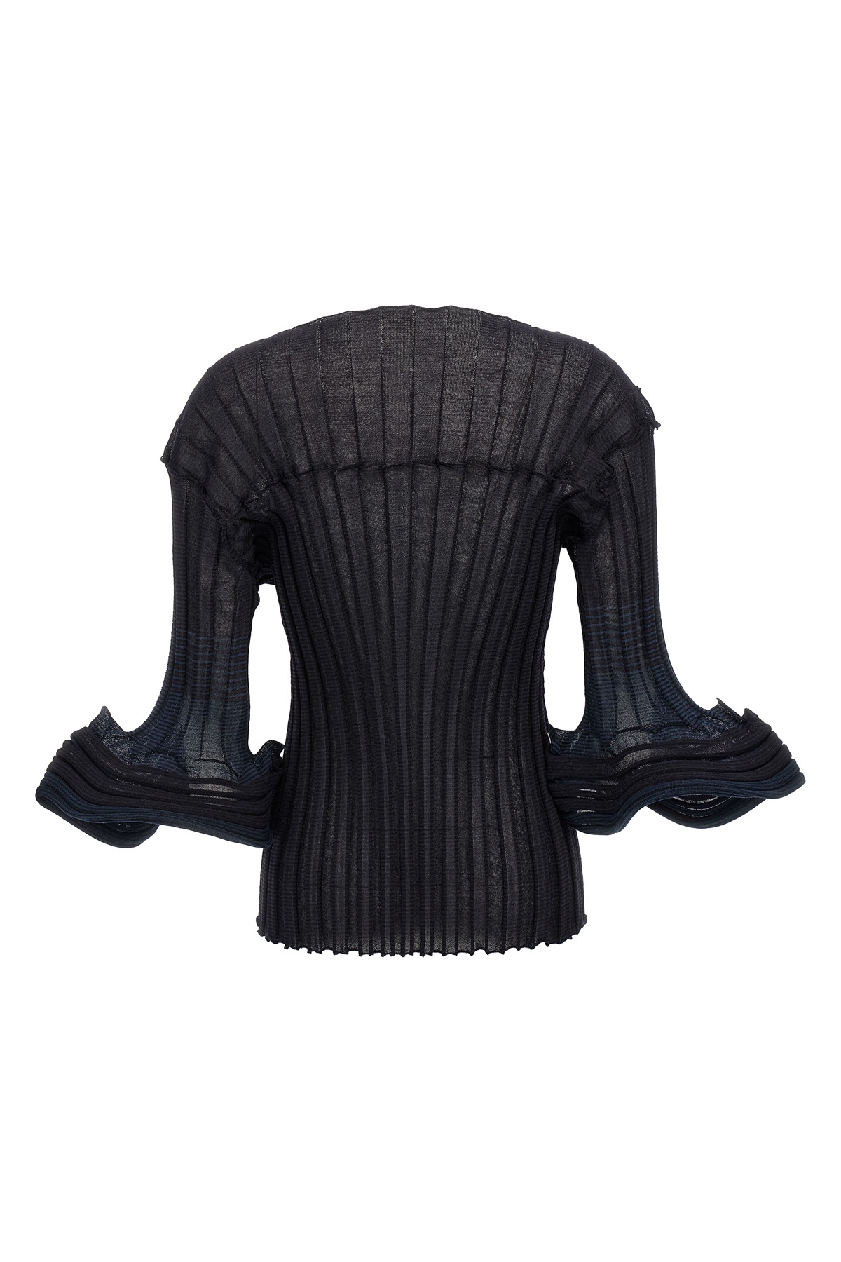 'Asagao' ribbed top with round neckline, and 3/4 sleeves.