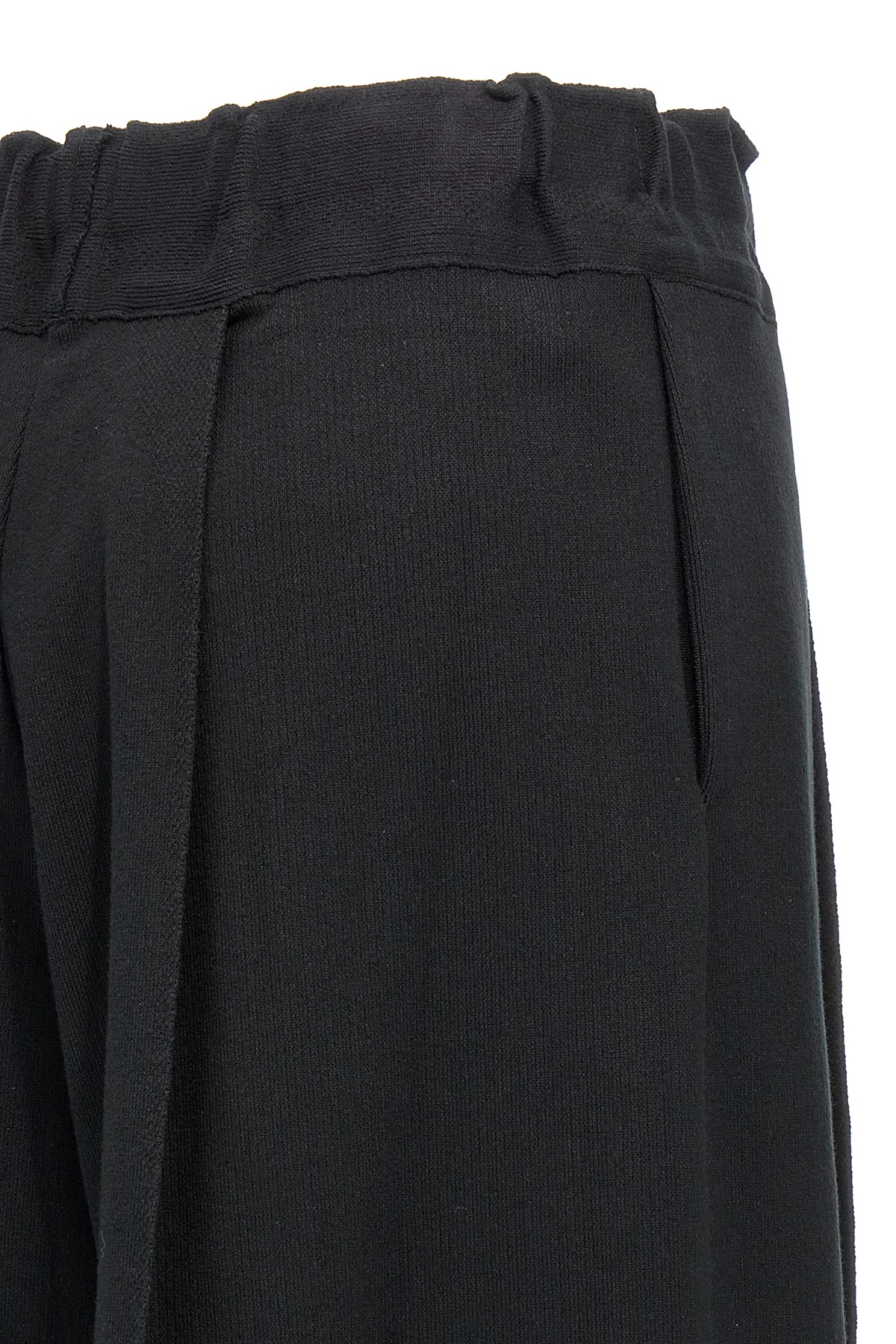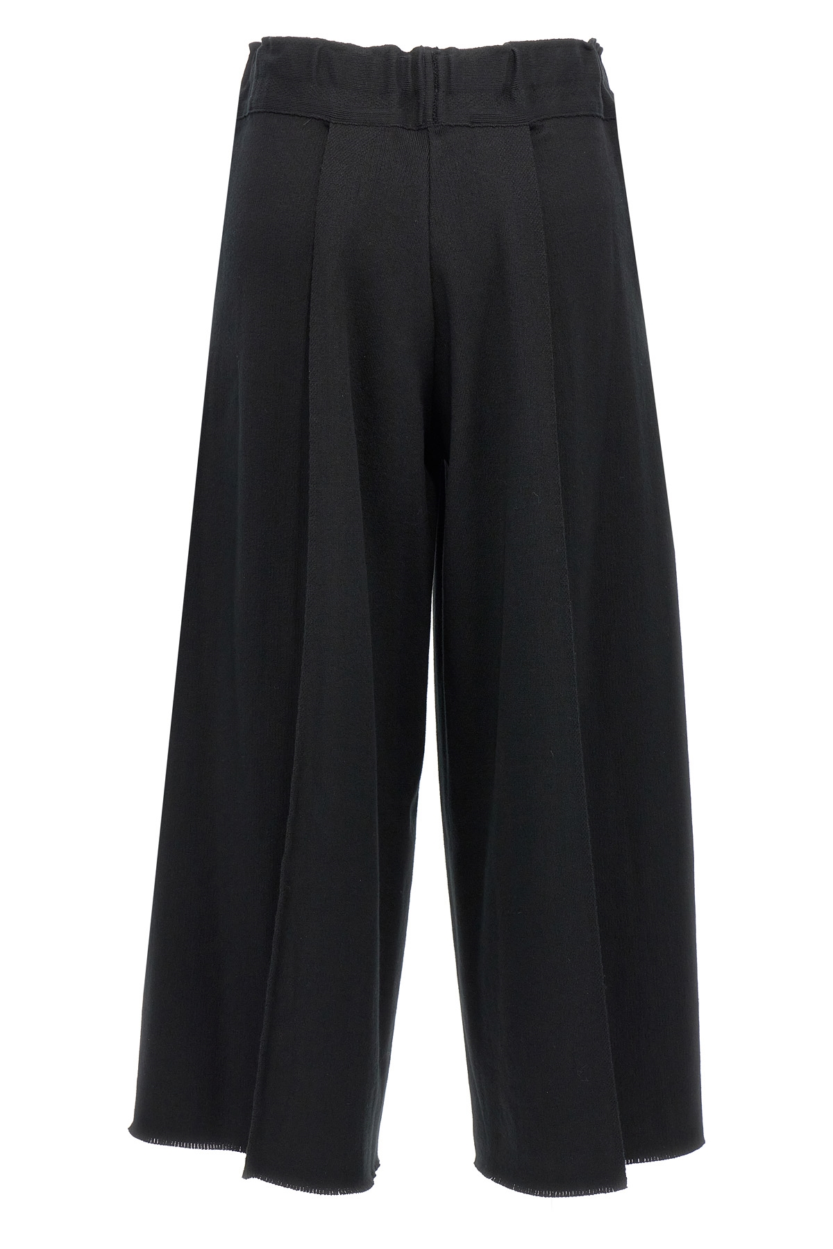 'Campagne' cotton blend knit pants with elastic waistband, pockets, wide leg with front pleats, fringed hem.