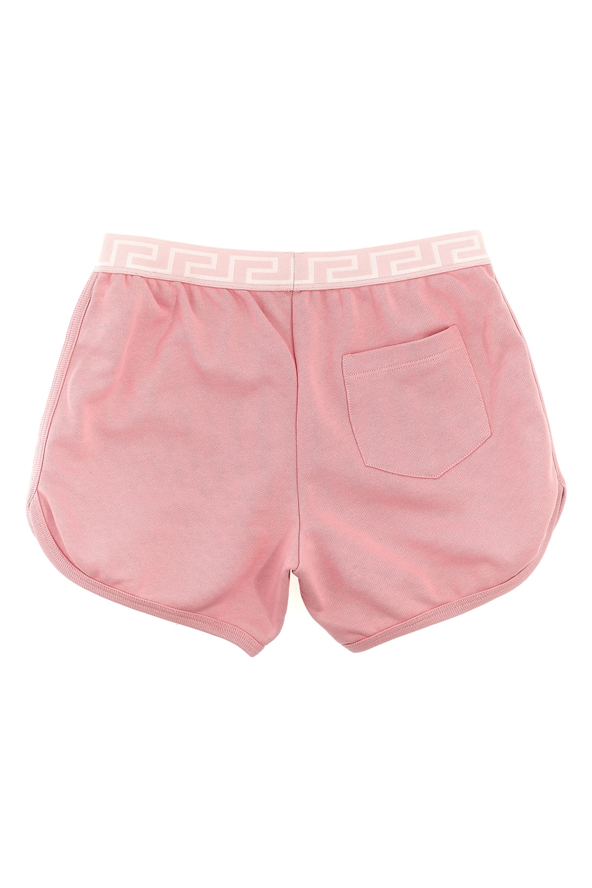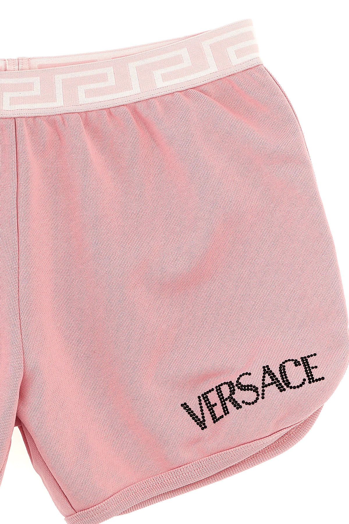 KIDS Cotton shorts with rhinestone logo, elastic waistband with Greek motif.