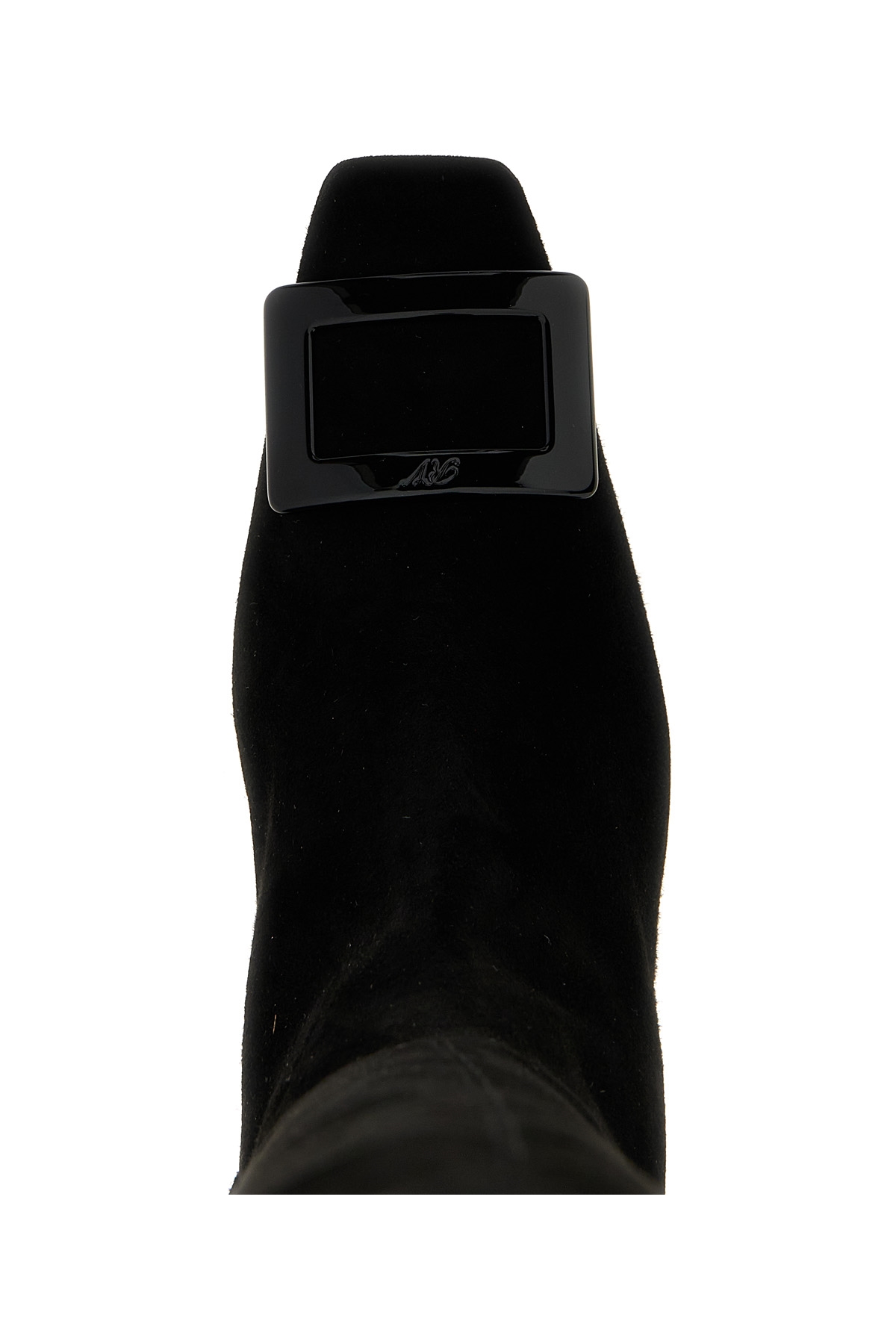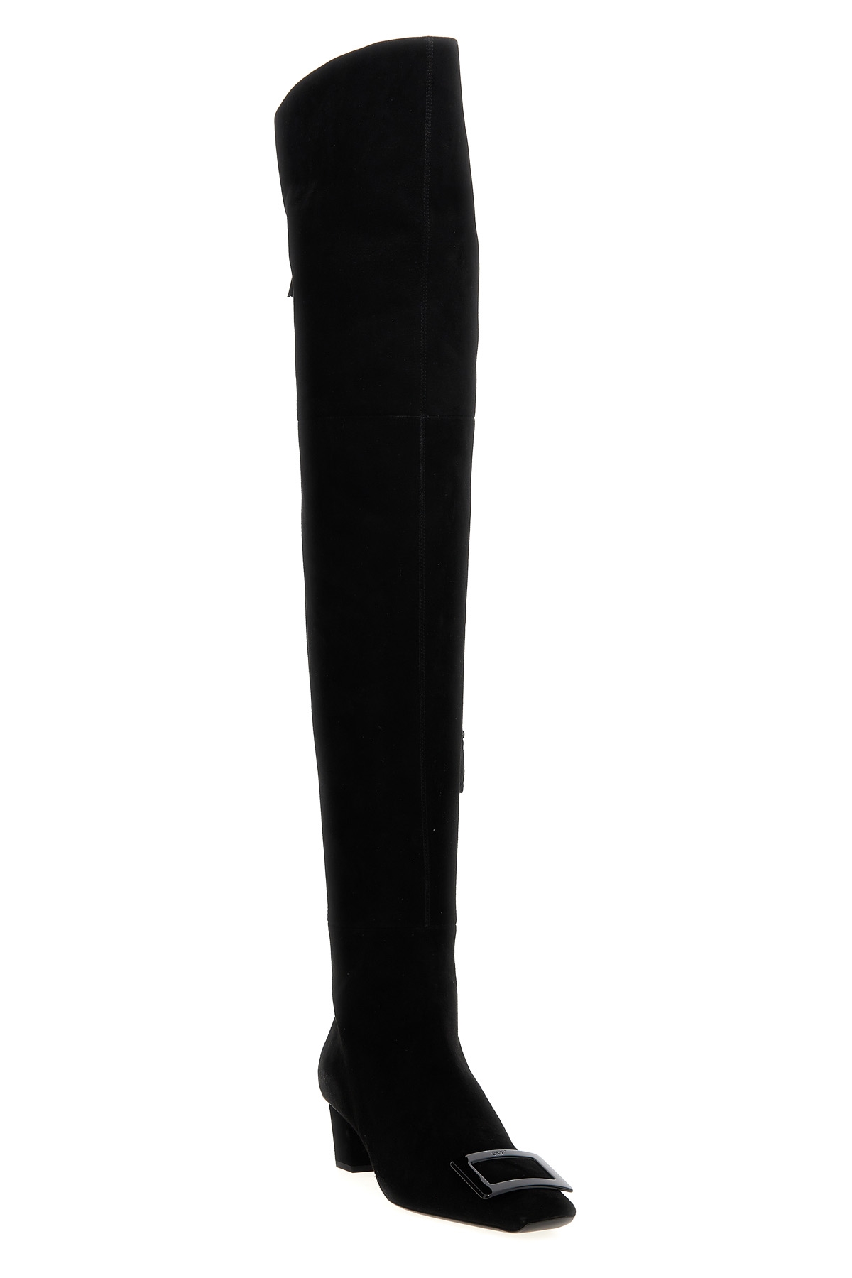 'Belle Vivier' suede cuissard boots, back drawstring, front lacquered buckle, coated Skyscraper heel.