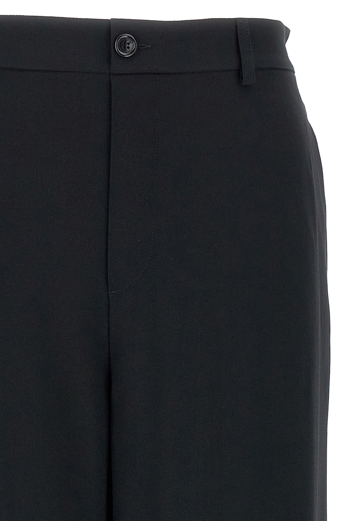Acetate blend trousers, zip and button closure, elastic waistband, pockets.