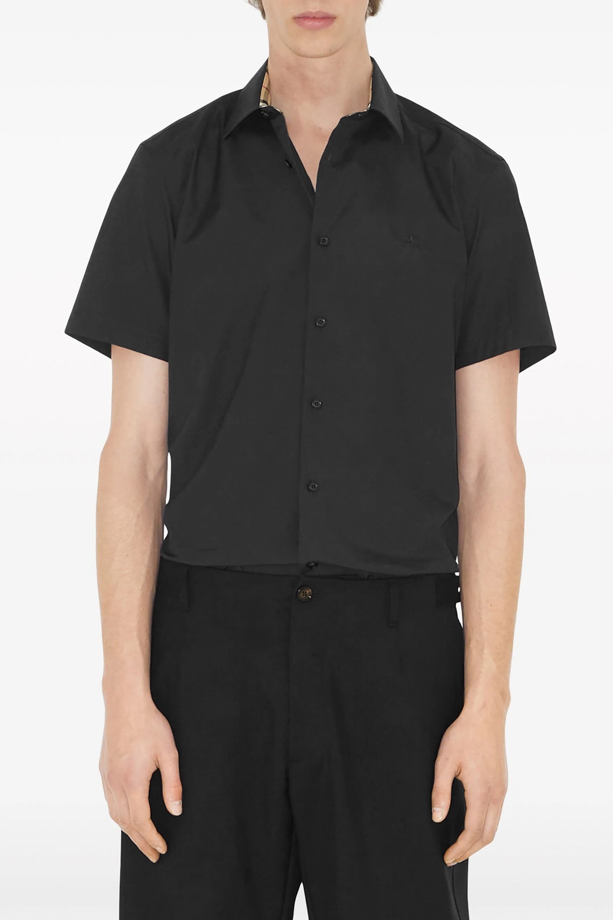 'Sherfield' stretch cotton shirt with front logo embroidery, button closure, short sleeves.