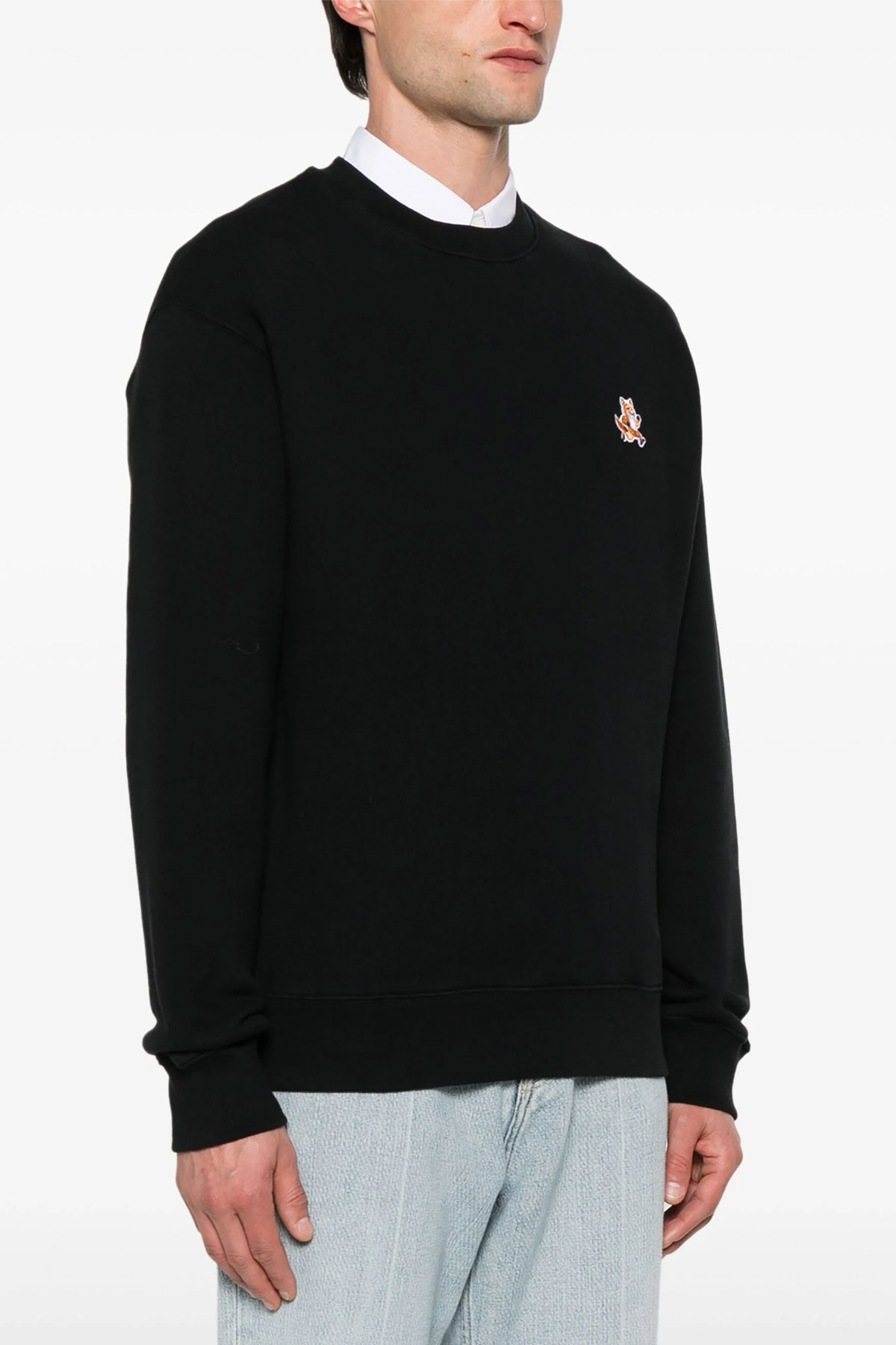 'Speedy Fox Patch' cotton sweatshirt with front logo patch, crew neck, long cuffed sleeves.
