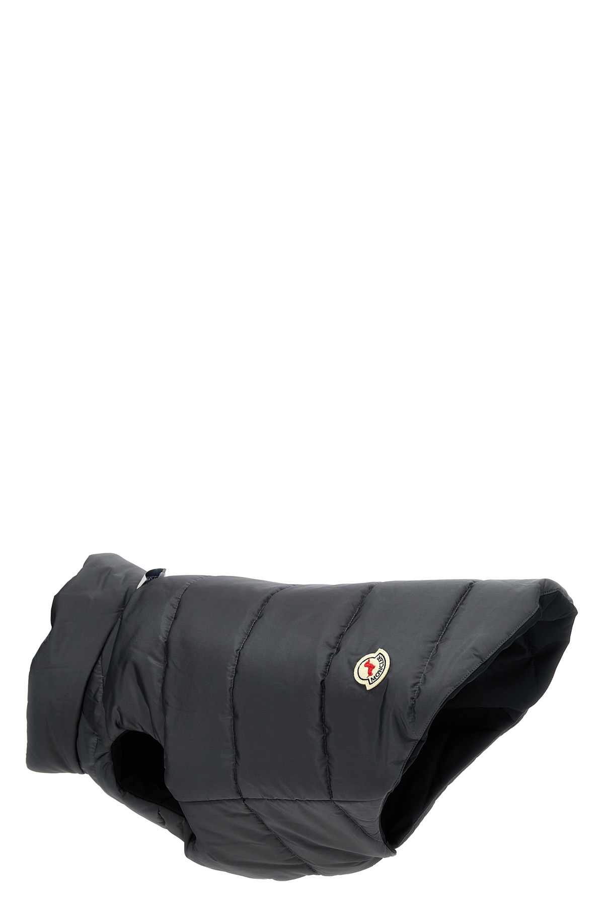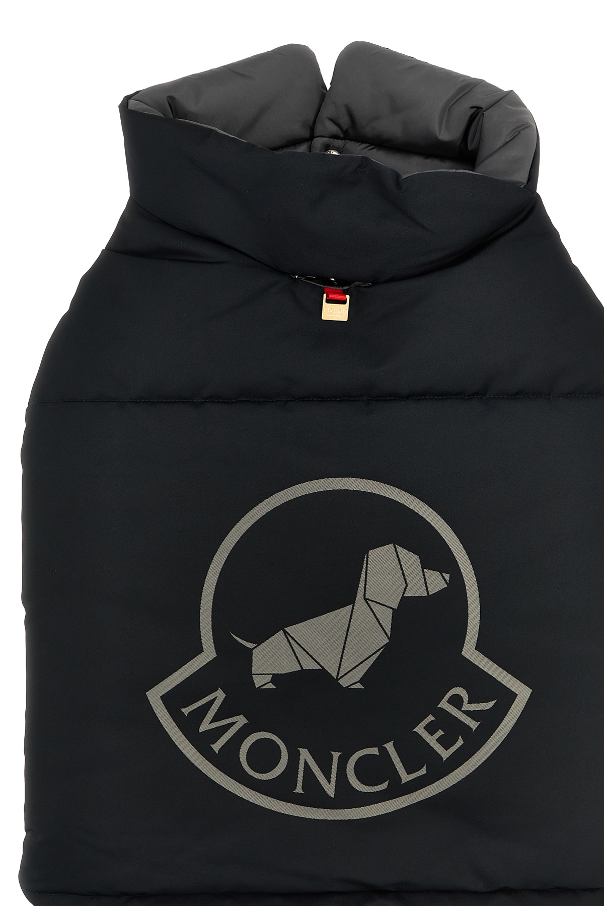 Moncler Genius x Poldo vest in padded nylon with logo print on the top, button closure.